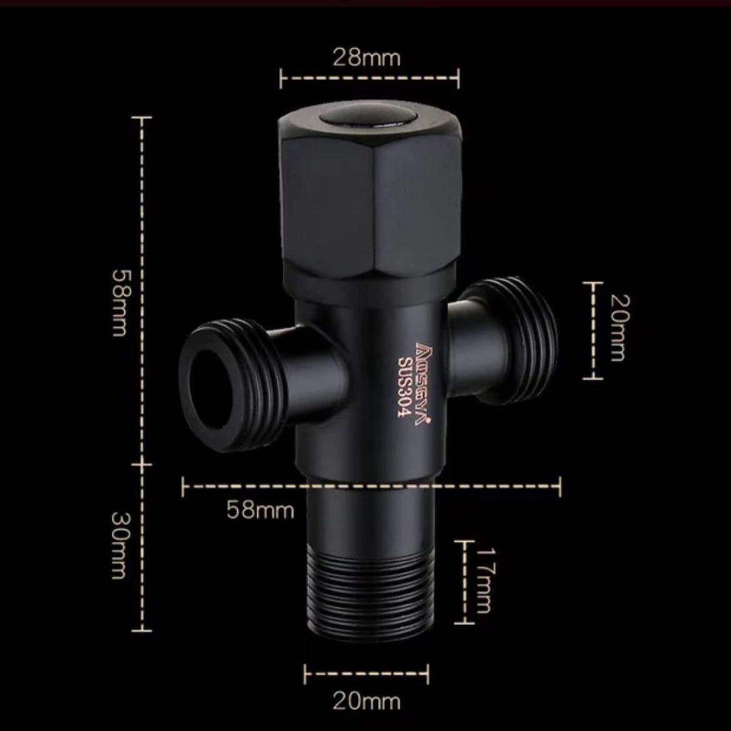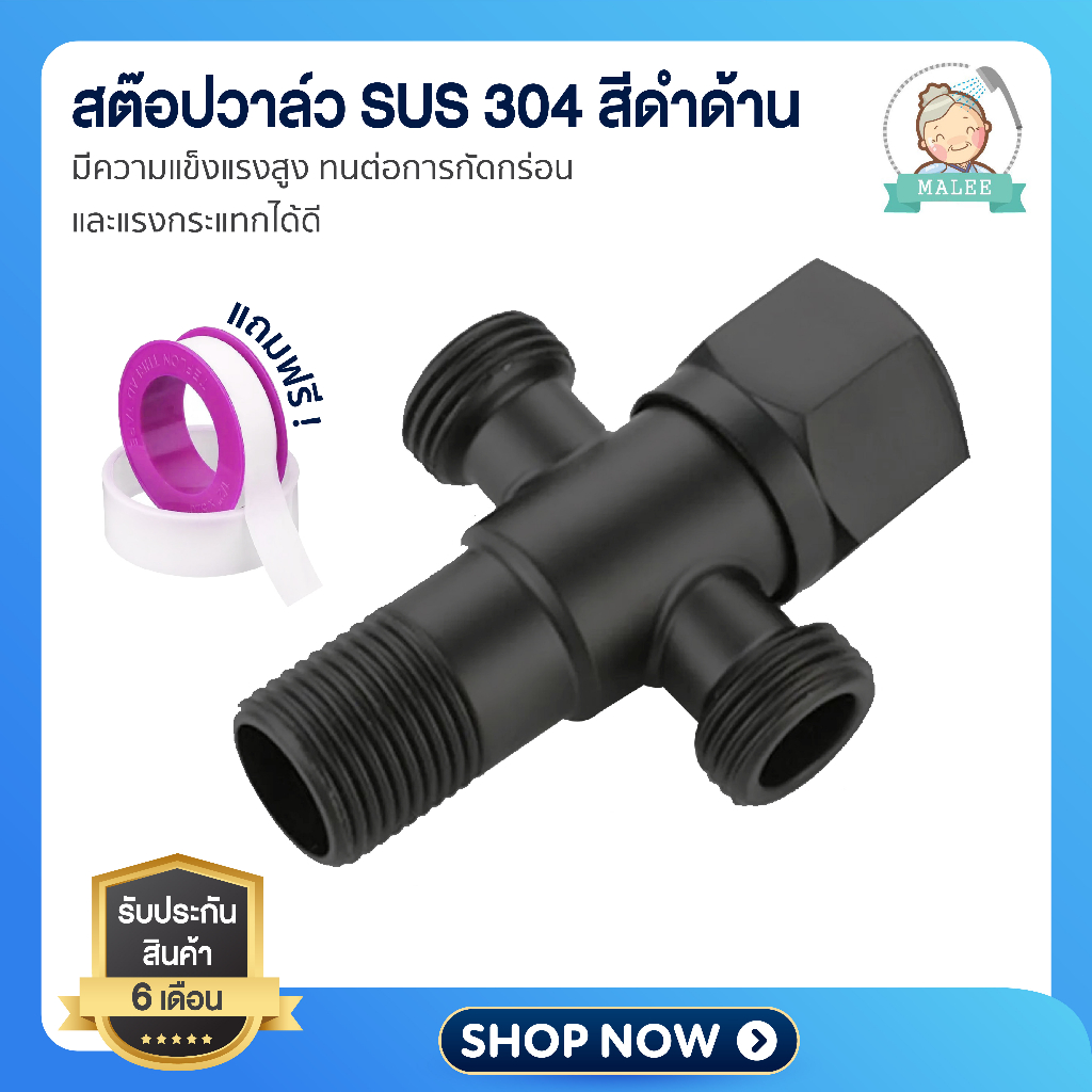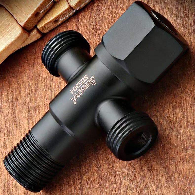 [ ลดอีก 20 บาท ] วาล์วลอย ก๊อกฝักบัว วาล์วสแตนเลส304 เคลือบดำ สต็อปวาล์ว 3 ทาง ทนทาน ไม่เป็นสนิม