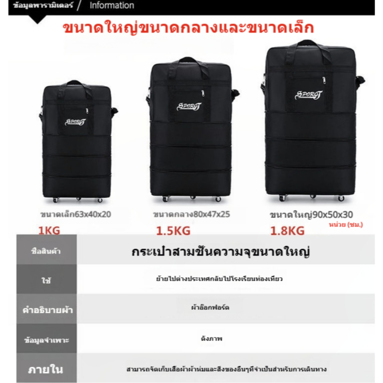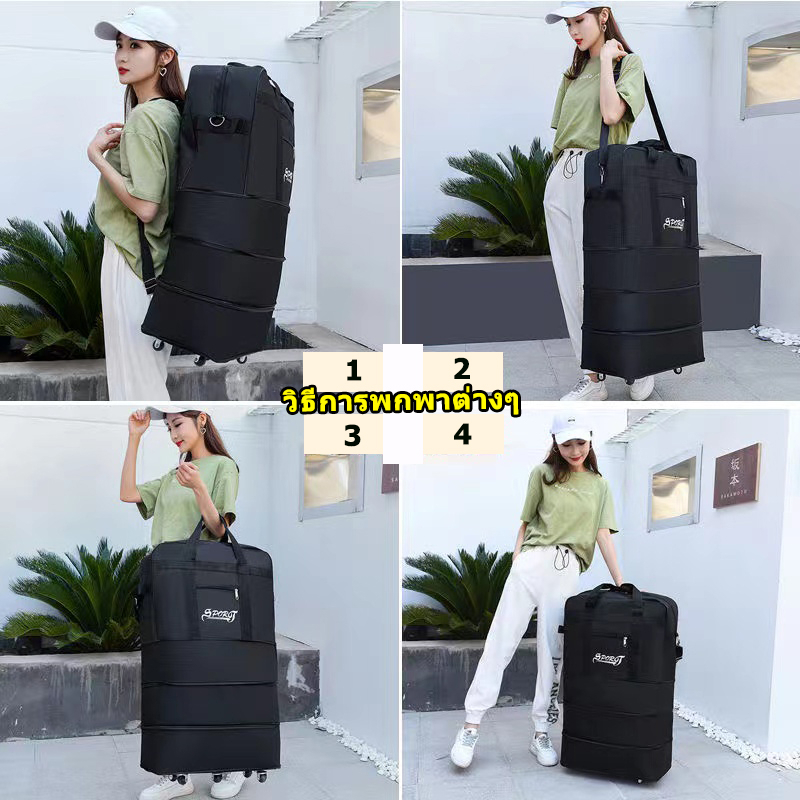 LLuckth【กระเป๋าเดินทางกันน้ำ】ขยายถึง130L ล้อลากถอดได้ ออกแบบมาเพื่อสะพายหลังและถือมือ เกาะกระเป๋า