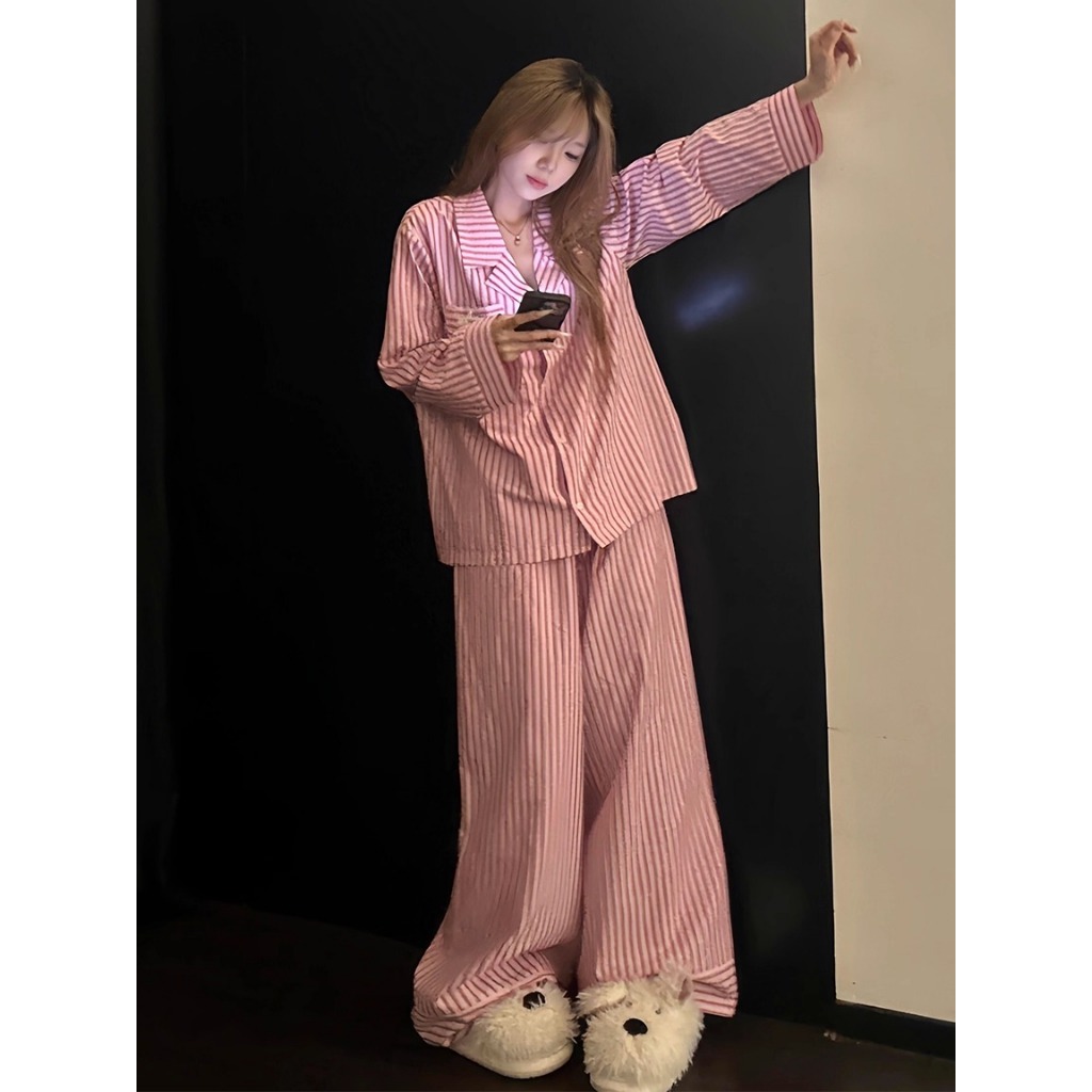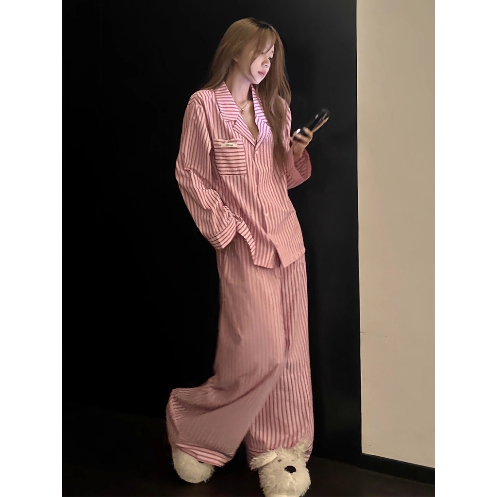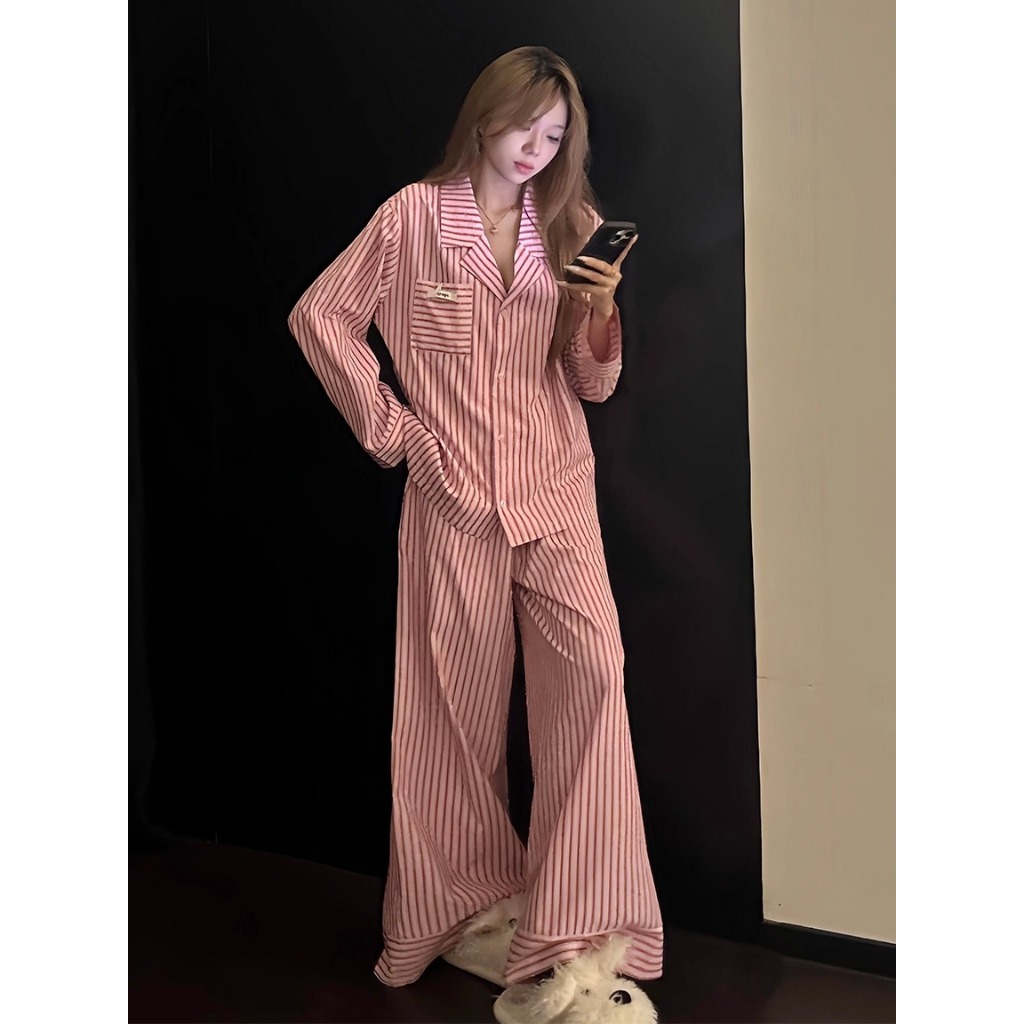 [TPNY]ชุดนอนและคาร์ดิแกนสไตล์เรียบง่ายสำหรับผู้หญิง เหมาะสำหรับการพักผ่อนในฤดูใบไม้ร่วง