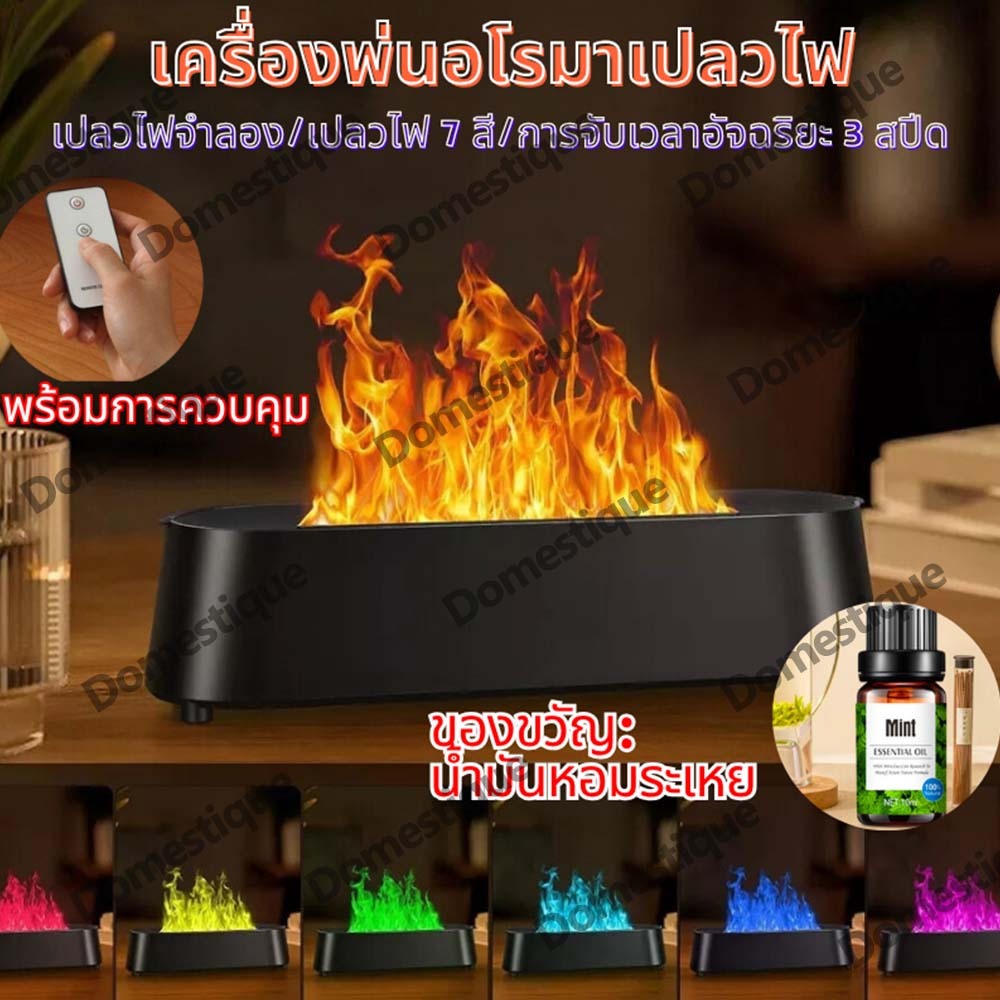 เครื่องพ่นอโรมาเปลวไฟ Flame Diffuser มีรีโมท ตั้งเวลาได้ ไฟLED เพิ่มความชื้น เครื่องพ่นไอน้ำ Aroma Diffuser Humidifier