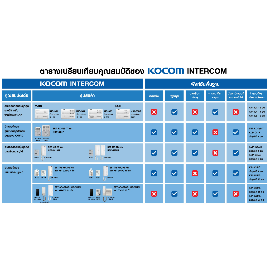 Kocom รุ่นKIP-611PGอินเตอร์คอมแบบยกหูจากเกาหลี เชื่อมต่อได้มากสุด 10 จุด โทรระบุจุดได้ เหมาะสำหรับโรงงาน โกดัง ลิฟต์