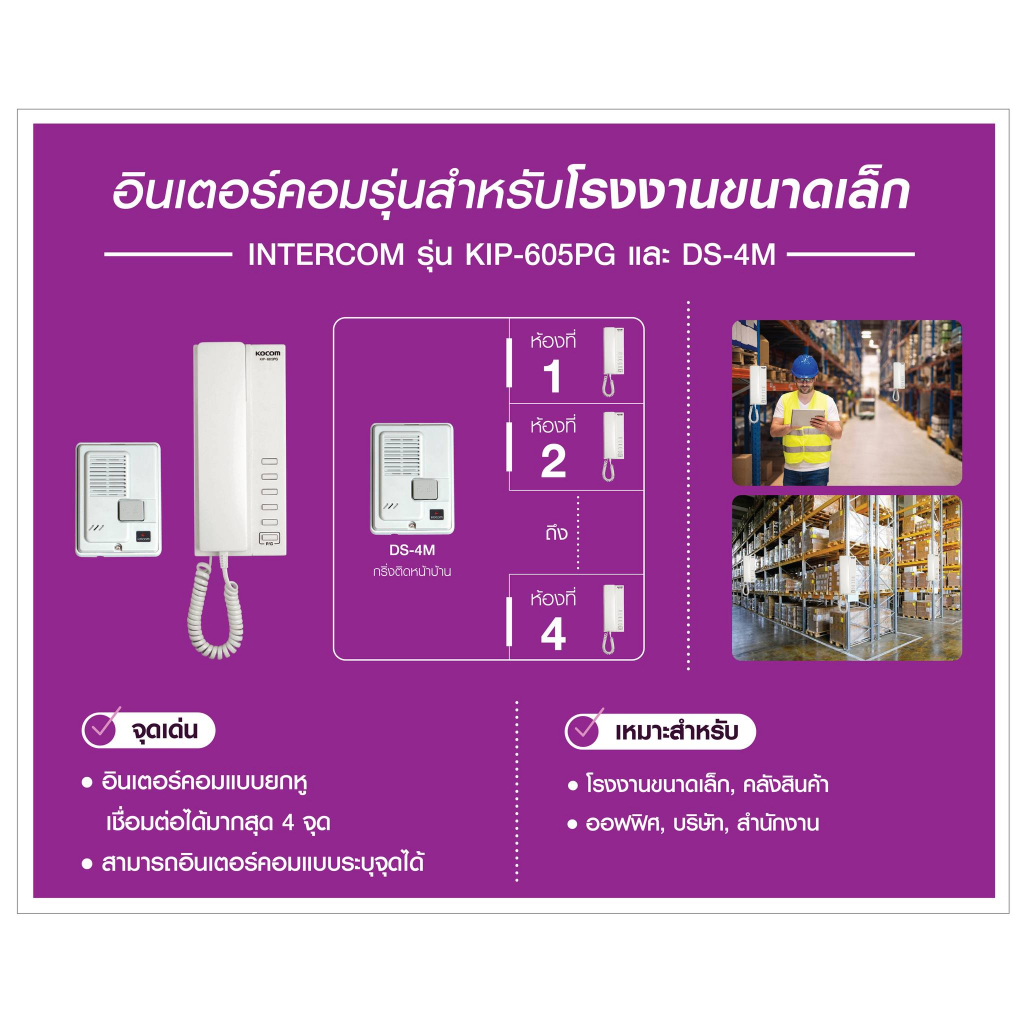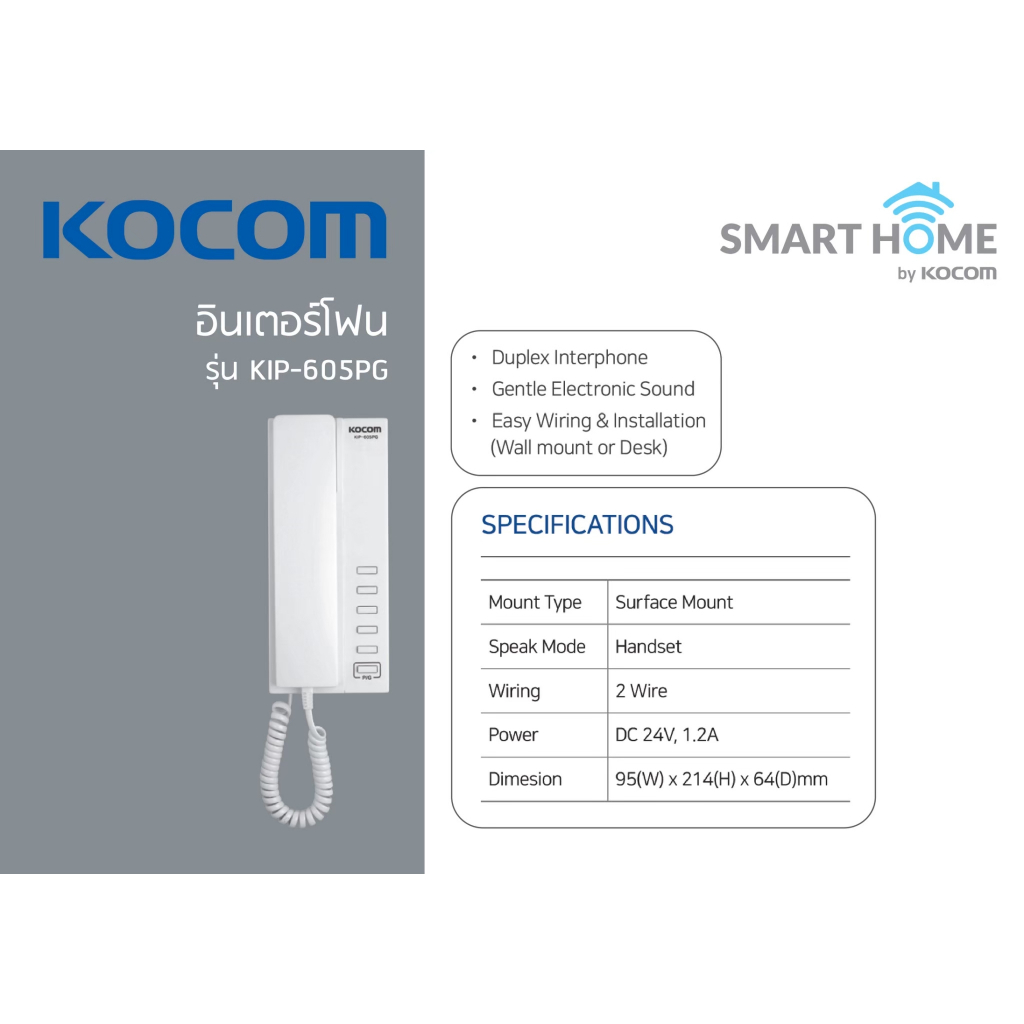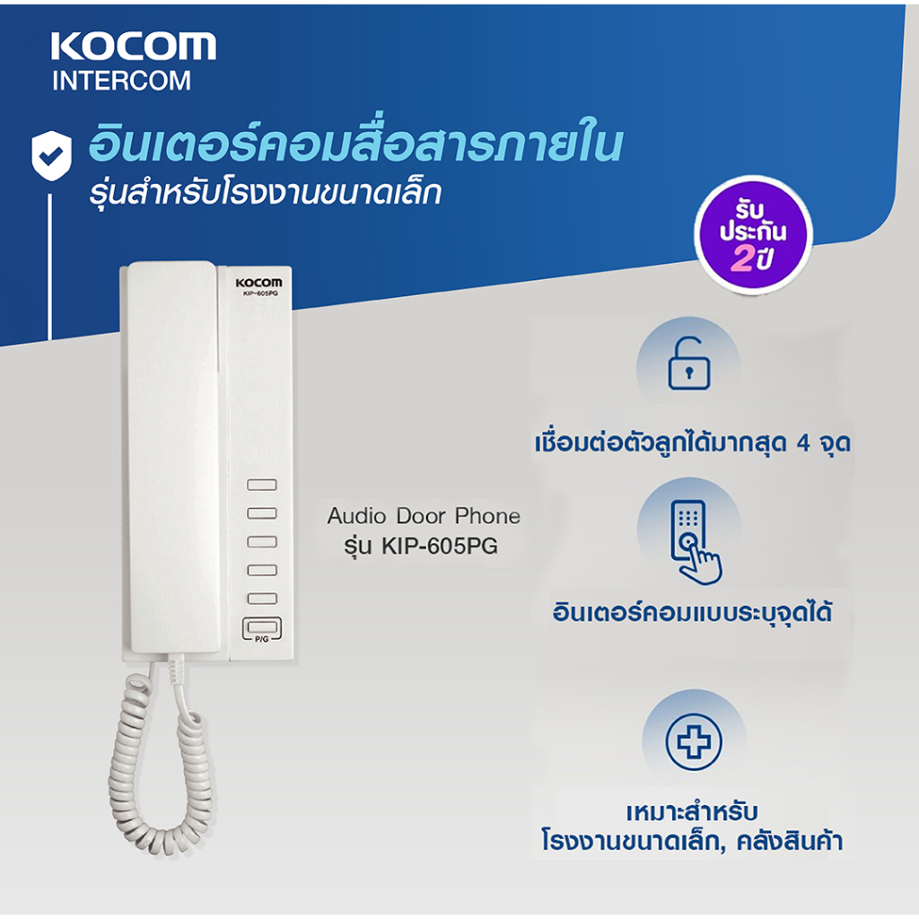 Kocom รุ่นKIP-605PG อินเตอร์คอมแบบยกหูจากเกาหลี เชื่อมต่อได้มากสุด 5 จุด โทรระบุจุดได้ เหมาะสำหรับโรงงาน โกดัง ลิฟ