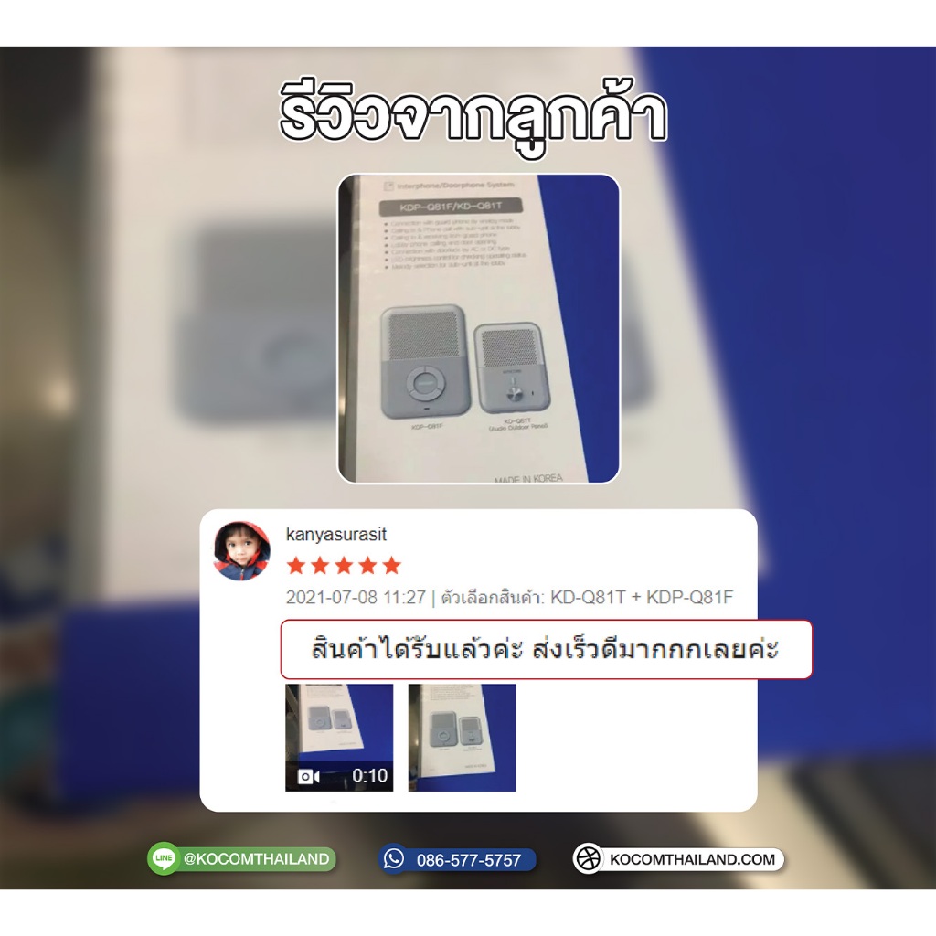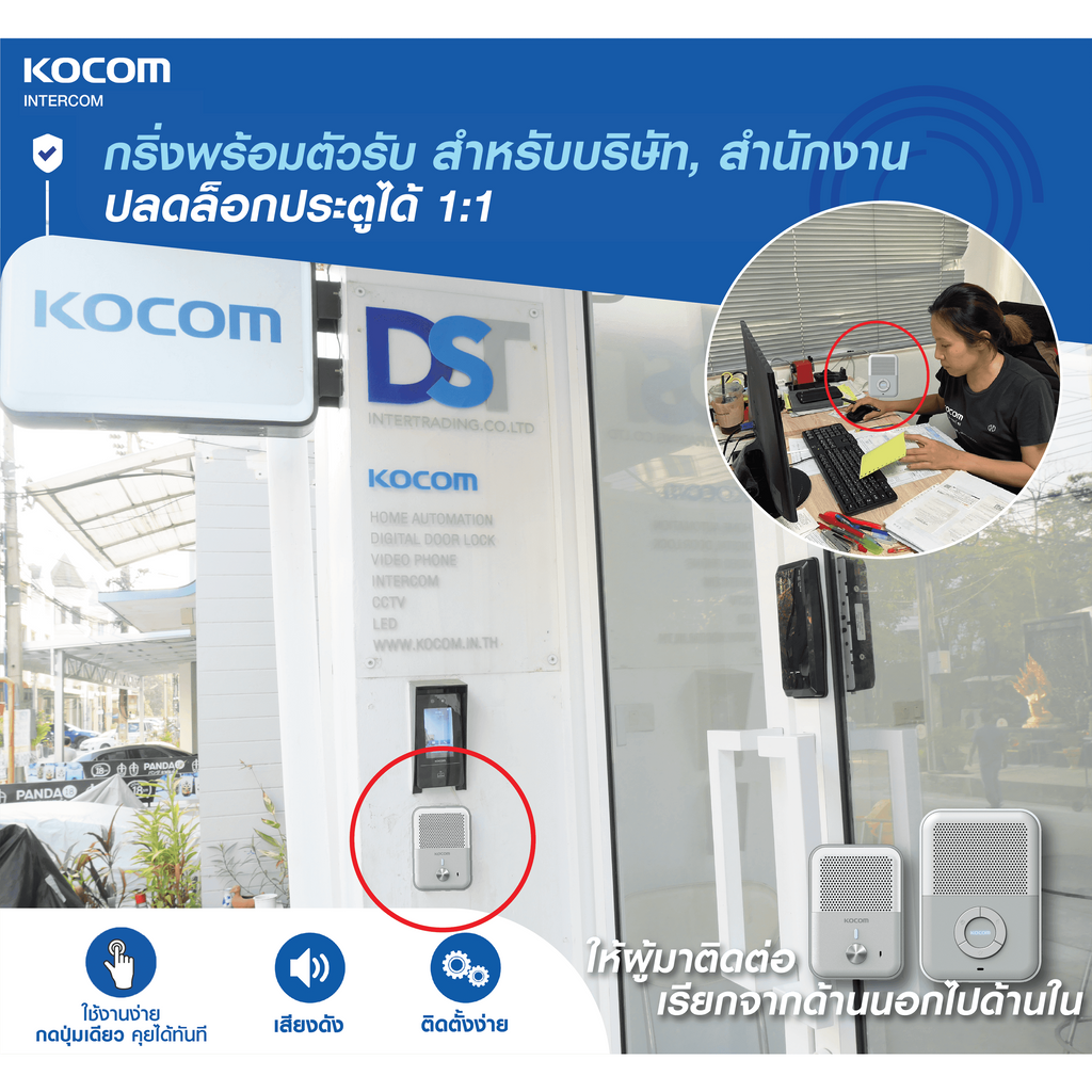 KOCOM เกาหลี กริ่ง ประตู ไฟฟ้า บ้าน ออฟฟิศ สนทนาได้ ปลดล็อคประตูได้ Door Phone Intercom KD-Q81T + KDP-Q81F