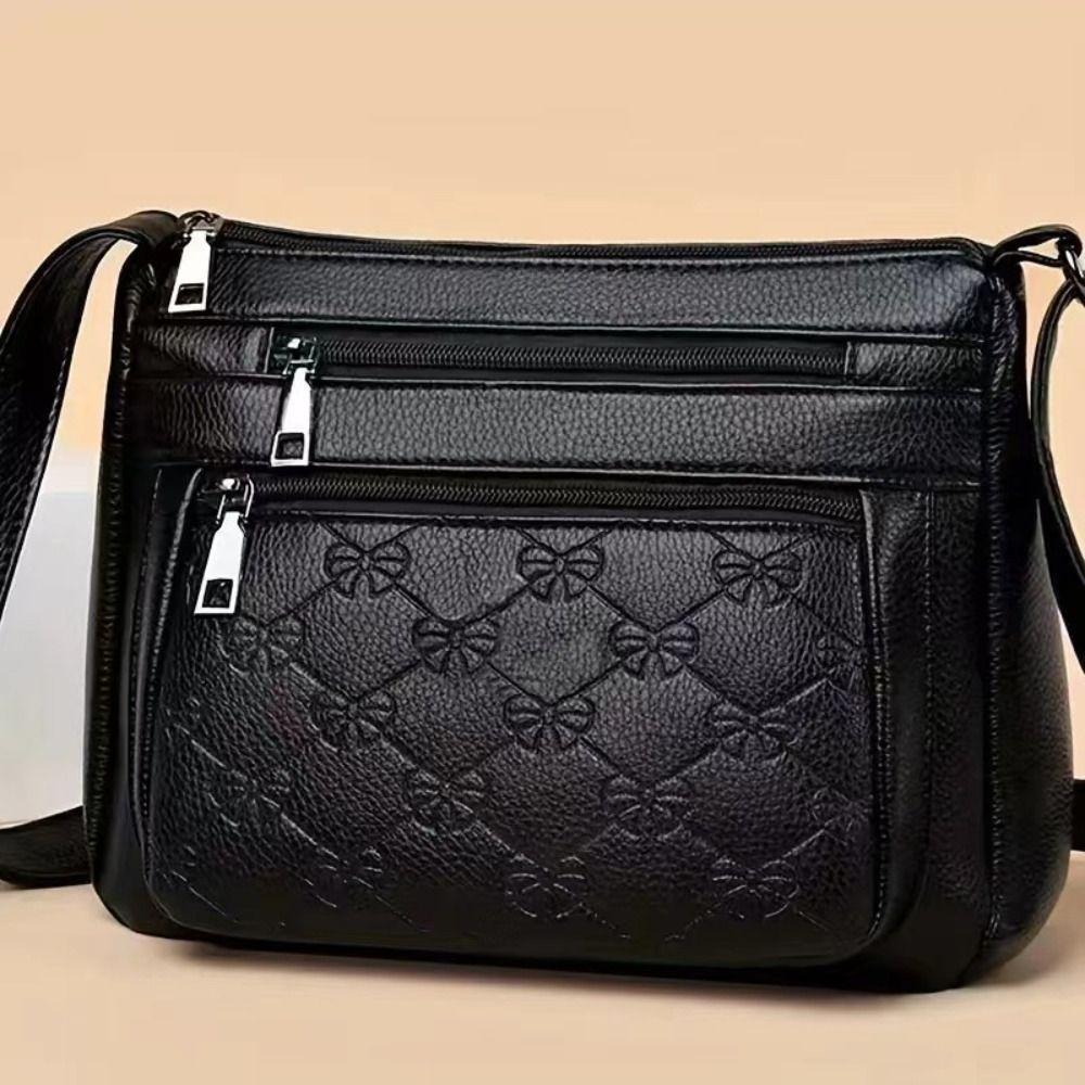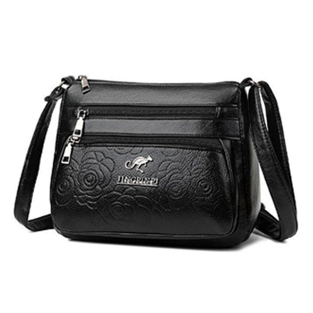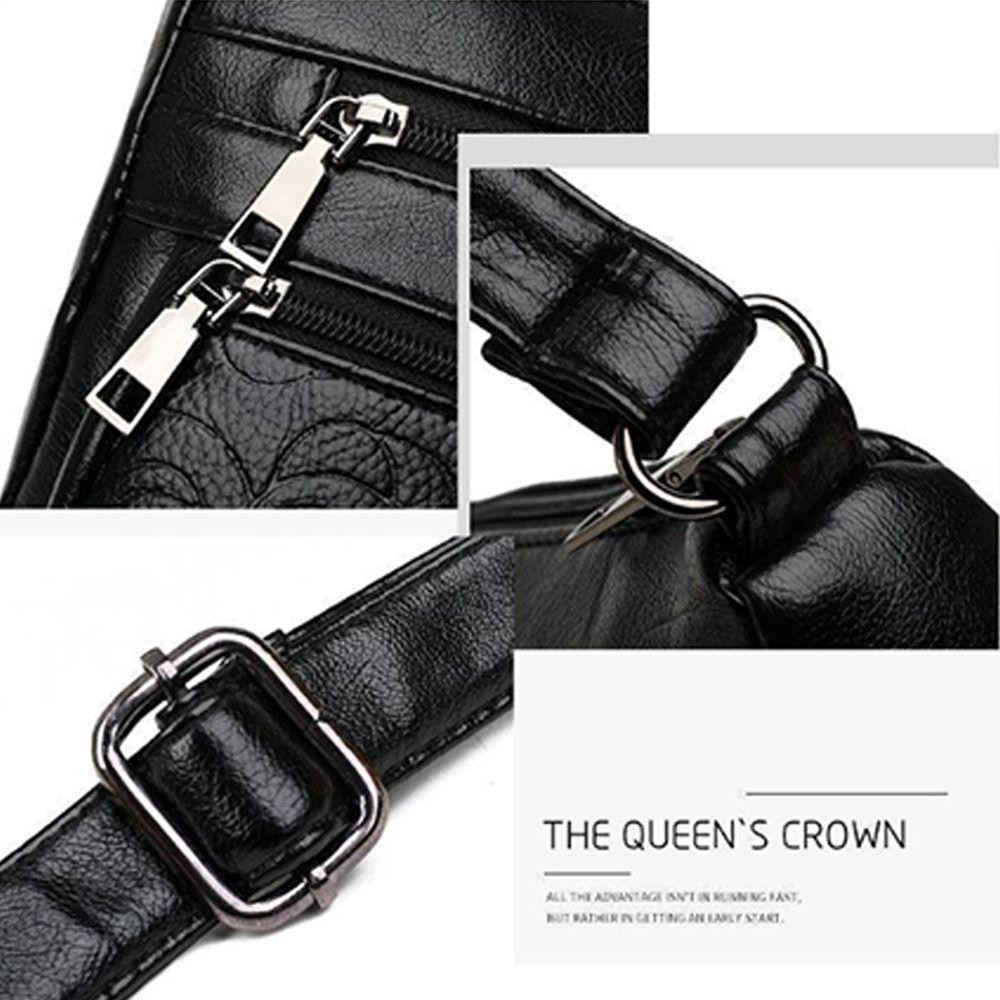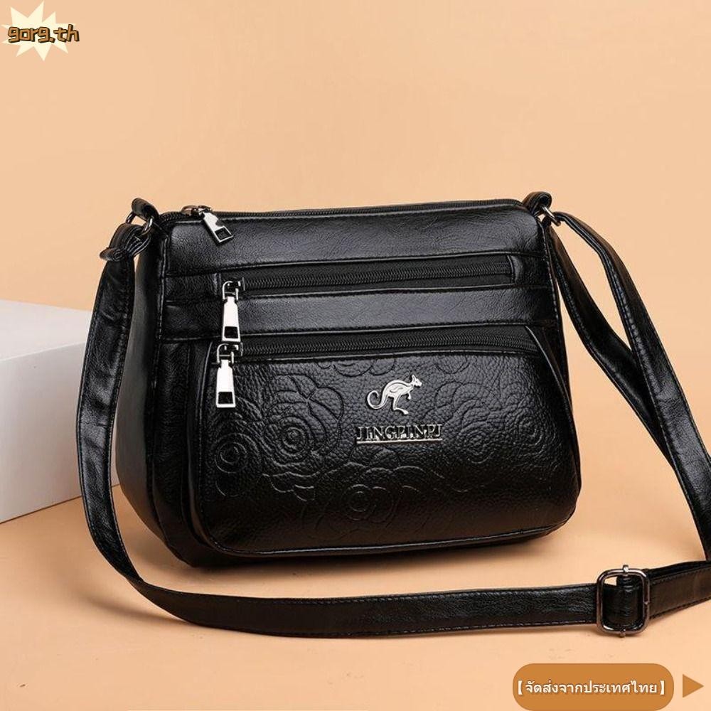 กระเป๋าสะพายข้างสไตล์เมสเซンเจอร์ หนังPU สีดำ ขนาดใหญ่มากพร้อมหลายชั้น