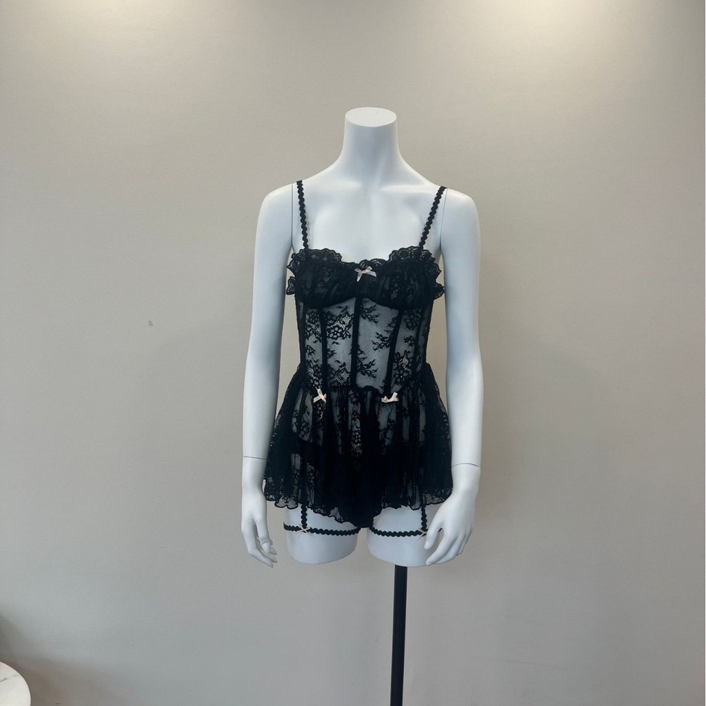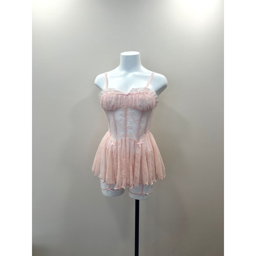 สีดําสีชมพู Nightdress ชุดนอนสตรีชุดชั้นในหวานมุมมองตาข่ายลูกไม้เซ็กซี่ร้อน Low-cut Nightgowns ชุดเครื่องแบบ