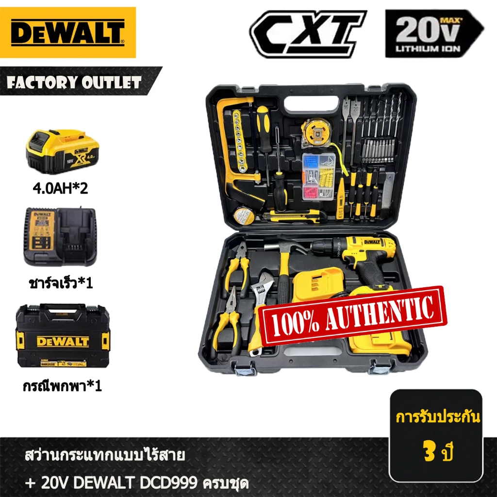 【พิเศษไทย】ชุดเครื่องมือ DEWALT DCD999 สว่านไฟฟ้า 20V | กันน้ำ IP54+อุปกรณ์30ชิ้น | ส่งเร็วคลังกรุงเทพ