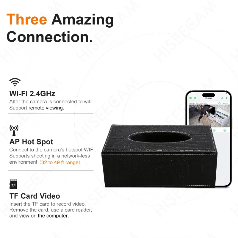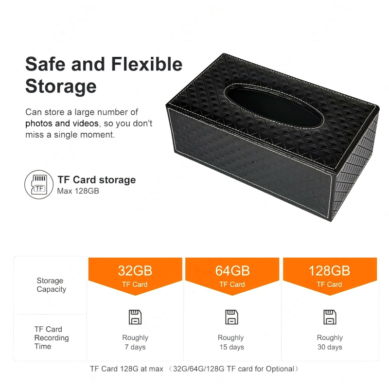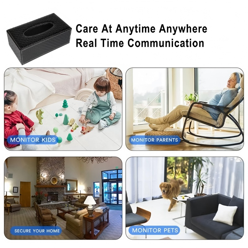 กล่องทิชชู่เฝ้าระวังบ้านการเชื่อมต่อ WiFi 1080P HD กล้องบันทึกวิดีโอทันที
