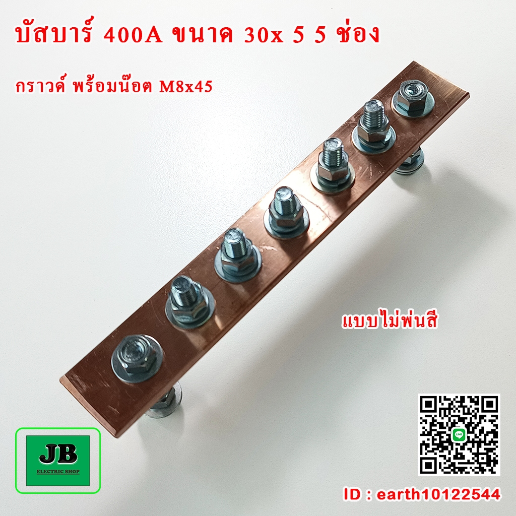 บัสบาร์ทองแดง 400A 5 ช่อง ขนาด 30x5 บาร์นิวตรอนพร้อมลูกถ้วย 35 บาร์กราวด์พร้อมน๊อต M8x45