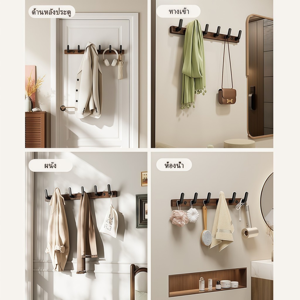 จัดส่งภายใน 8 ชั่วโมง👜 ตะขอไม้วอลน ัท ติดผนัง สําหรับแขวนเสื้อผ้า กระเป๋า และสิ่งของอื่นๆ