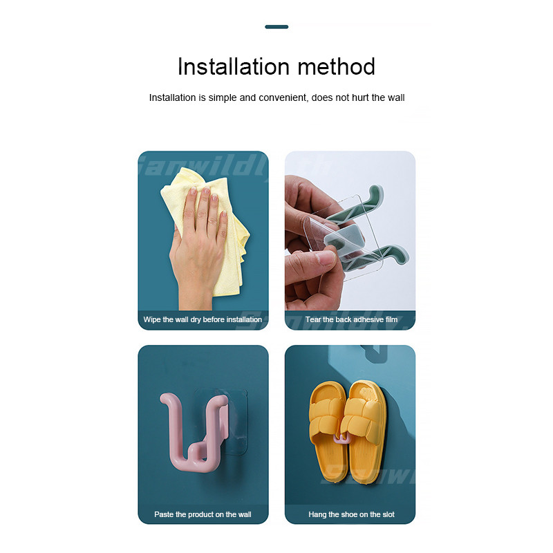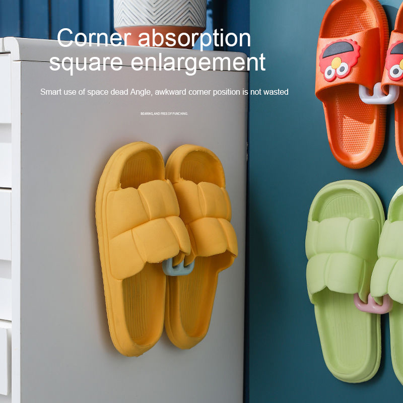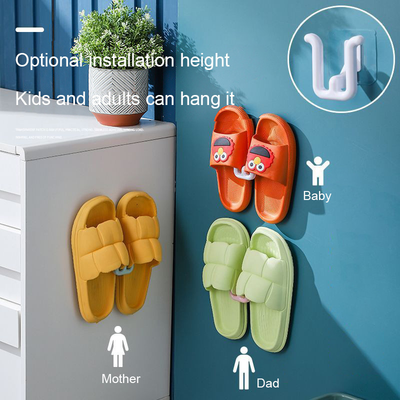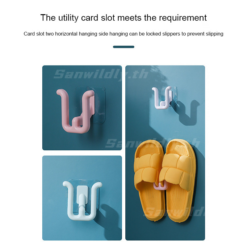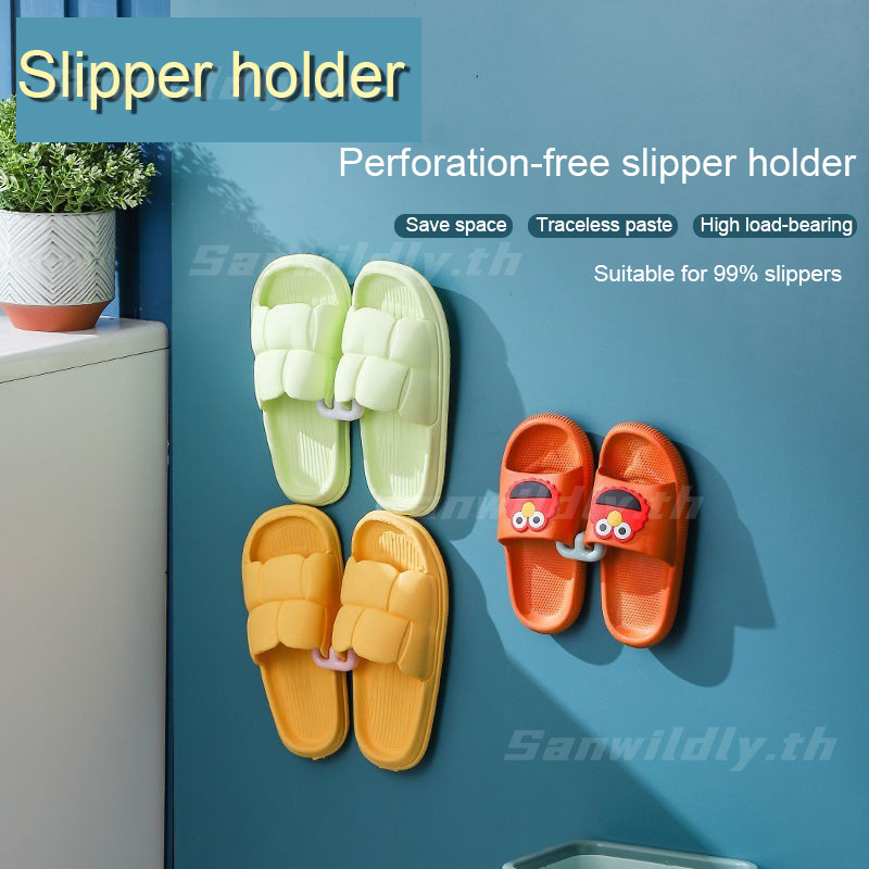 💕SW💕 ราวแขวนรองเท้าแตะในห้องน้ำแบบติดผนัง ไม่ต้องเจาะ พร้อมตะขอสำหรับเก็บของติดผนัง ถูกสุดๆ