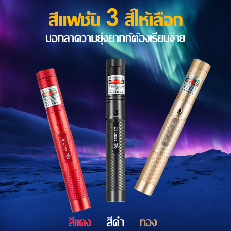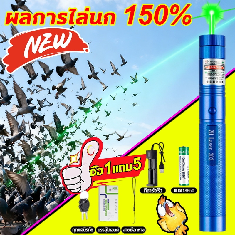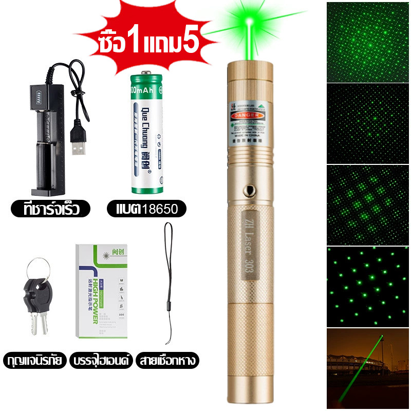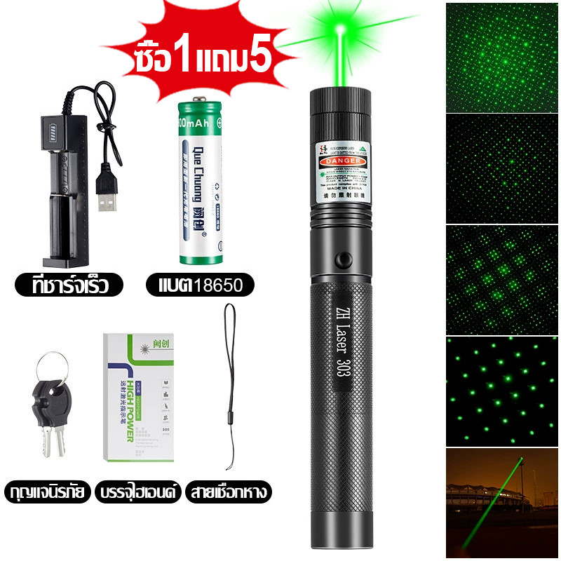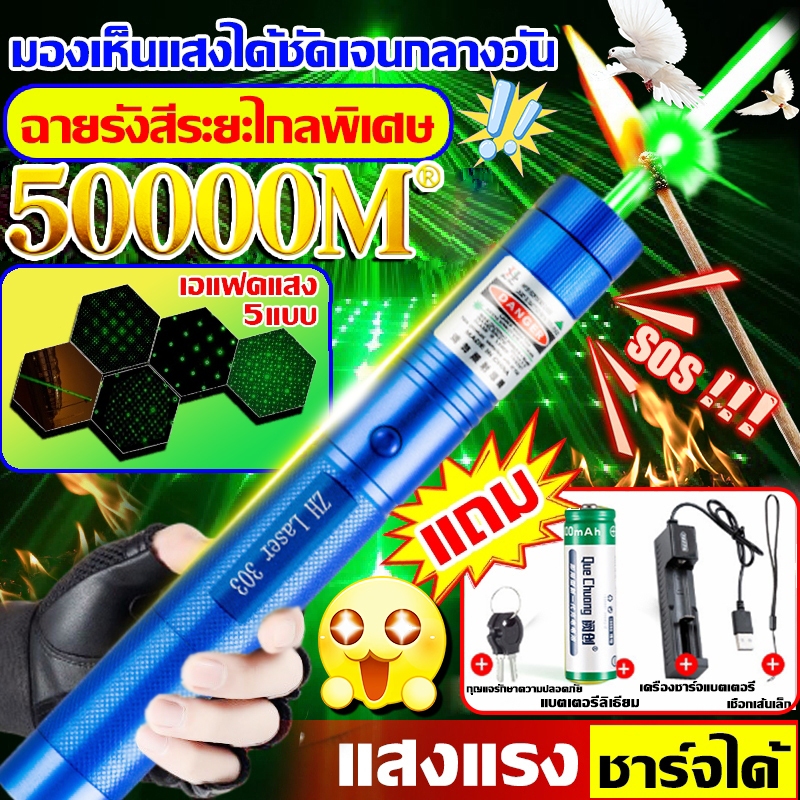 ⚡ระยะไกลสุดสว่าง50000 ม. ⚡เลเซอร์แรงสูงแสงเขียว Laser303+ถ่านชาร์จ6800mAh+เครื่องชาร์จ laser pointer เลเซอร์พกพา