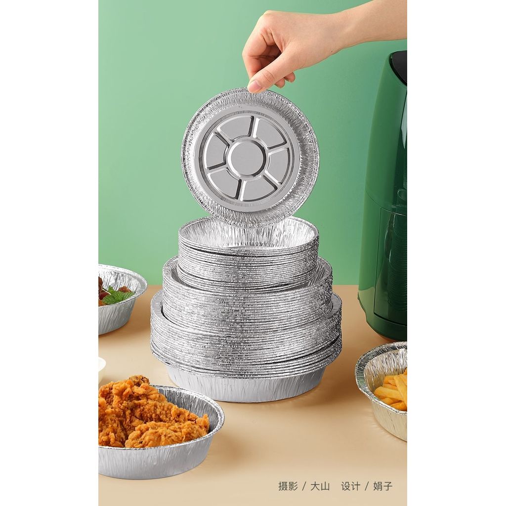 Air Fryer Dedicated Tinfoil ถาดเตาอบเบเกอรี่อลูมิเนียมฟอยล์แบบใช้แล้วทิ้งกล่องหลายขนาดรอบจานอาหารค่ํา 10/5 ชิ้นแพ็ค