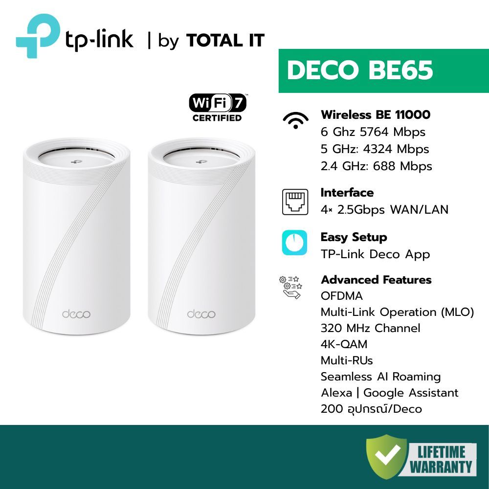 TP-Link Deco BE65 Mesh Wi-Fi 7 BE11000 Tri-Band ตัวท็อป 4 พอร์ต 2.5G + USB