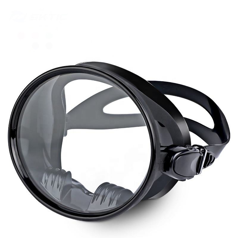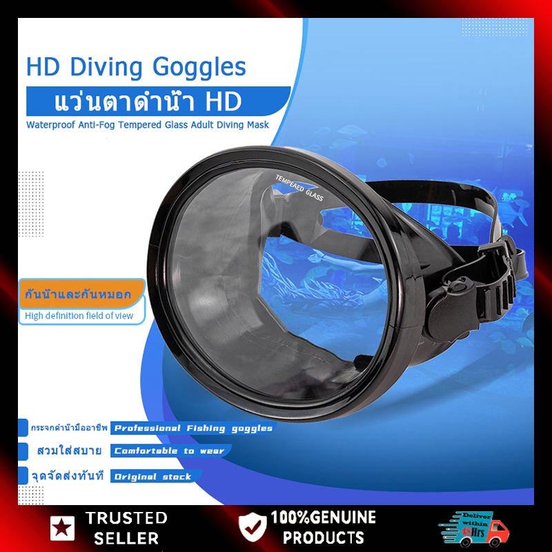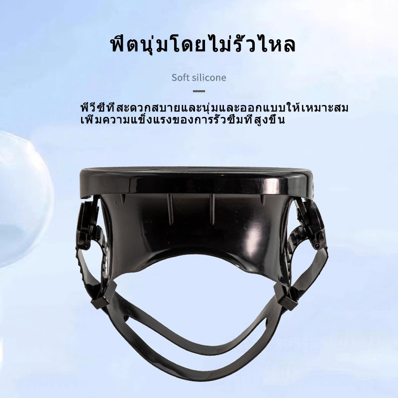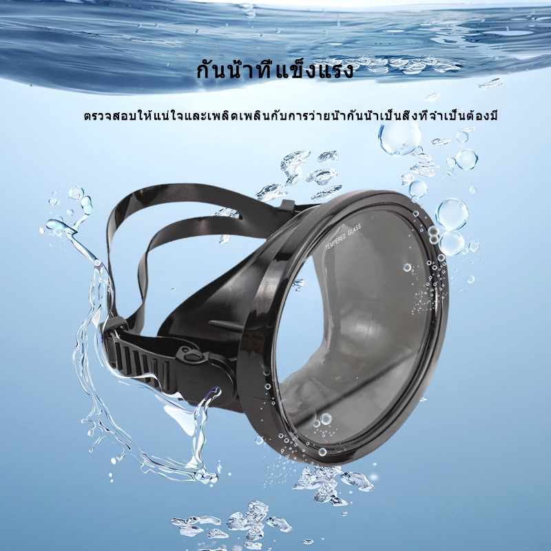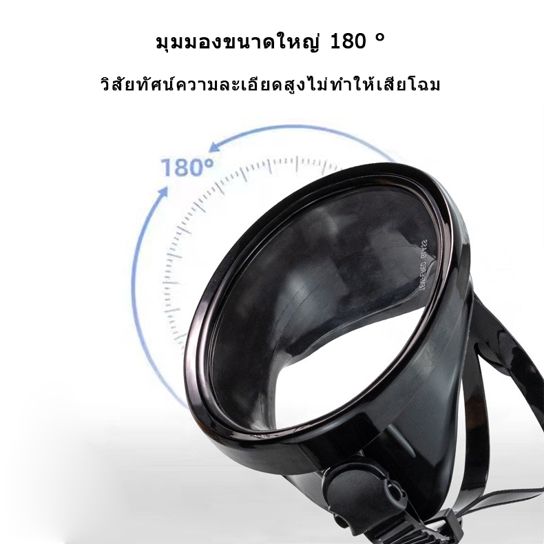 หน้ากากดำน้ำ หน้ากากดำน้ำยิงปลา แว่นดำน้ำ สีดำ DIVE MASK เลนส์กระจกเกรด A ปรับสายได้