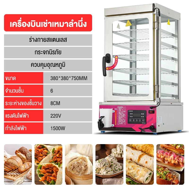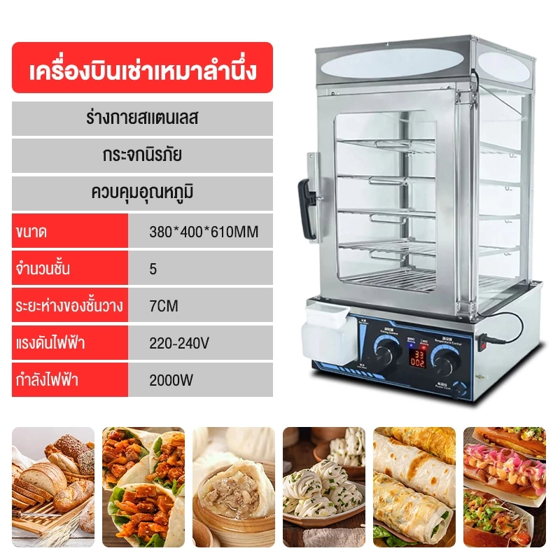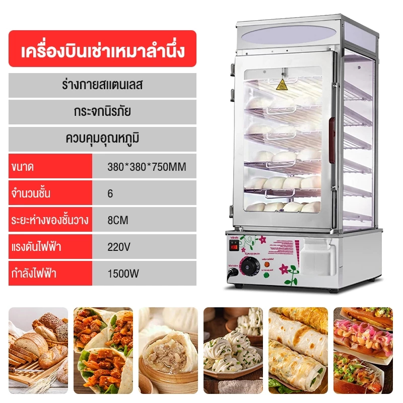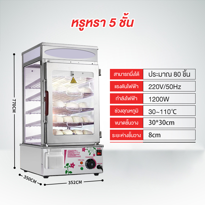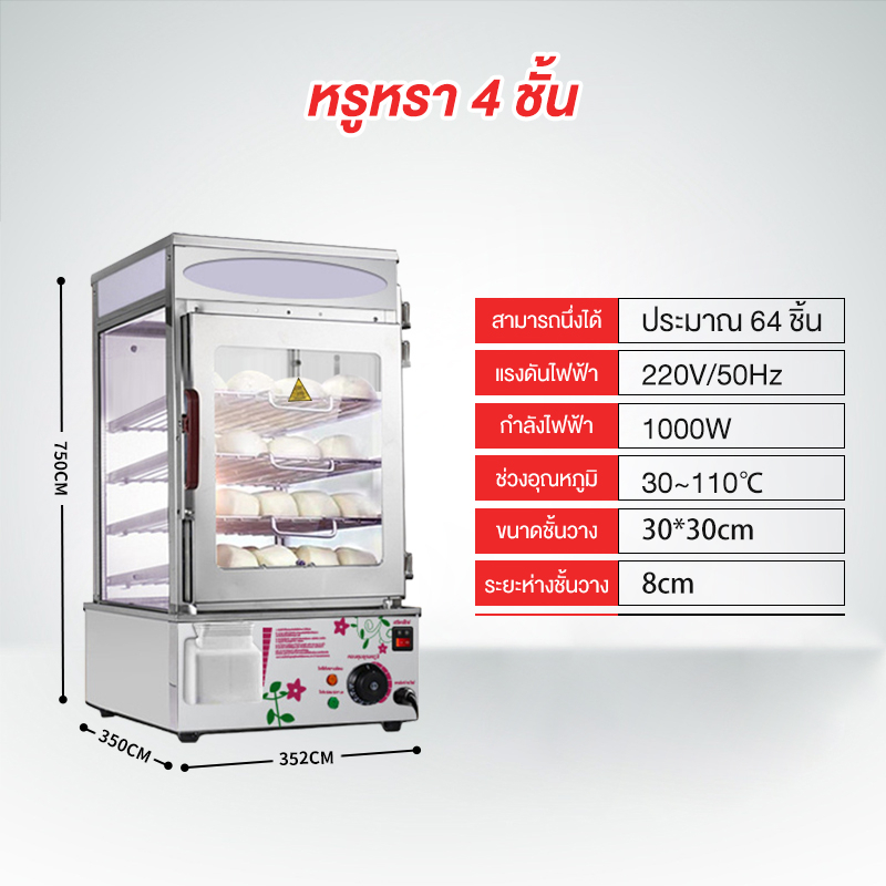 ตู้นึ่งซาลาเปาขนมจีบเชิงพาณิชย์ เครื่องนึ่งไฟฟ้าสำหรับซาลาเปาและขนมจีบ ตู้นึ่งโชว์ซาลาเปาขนมจีบรักษาอุณ EPSB-50D