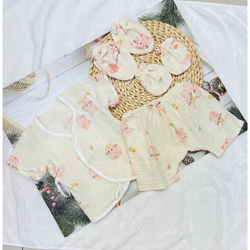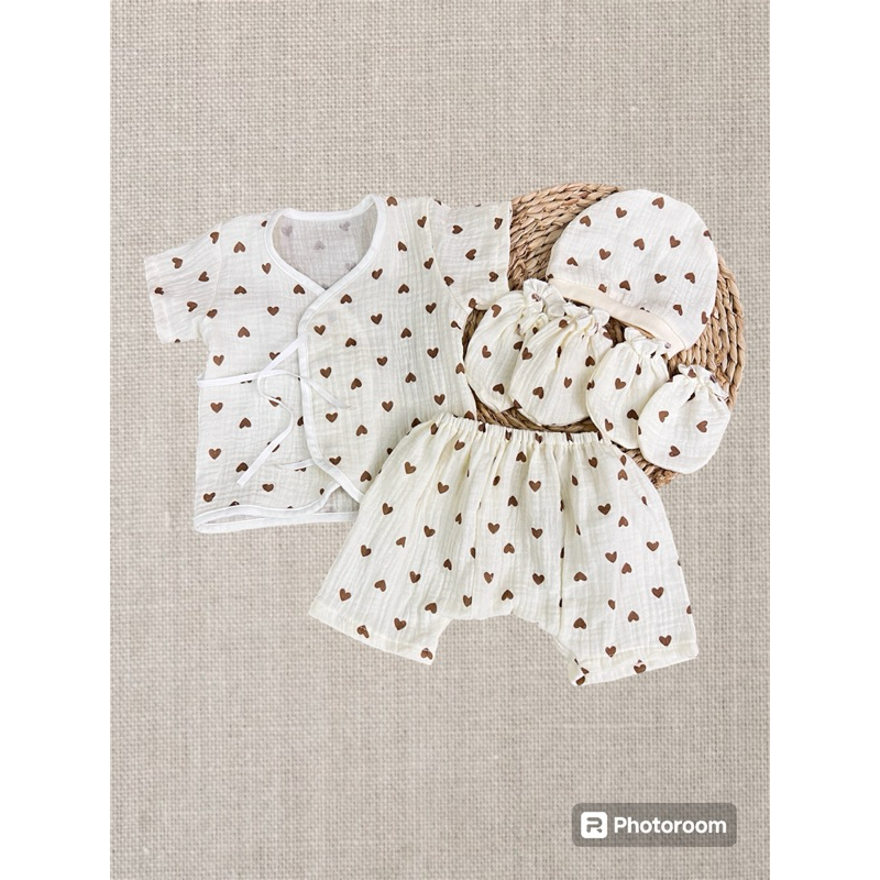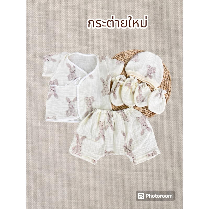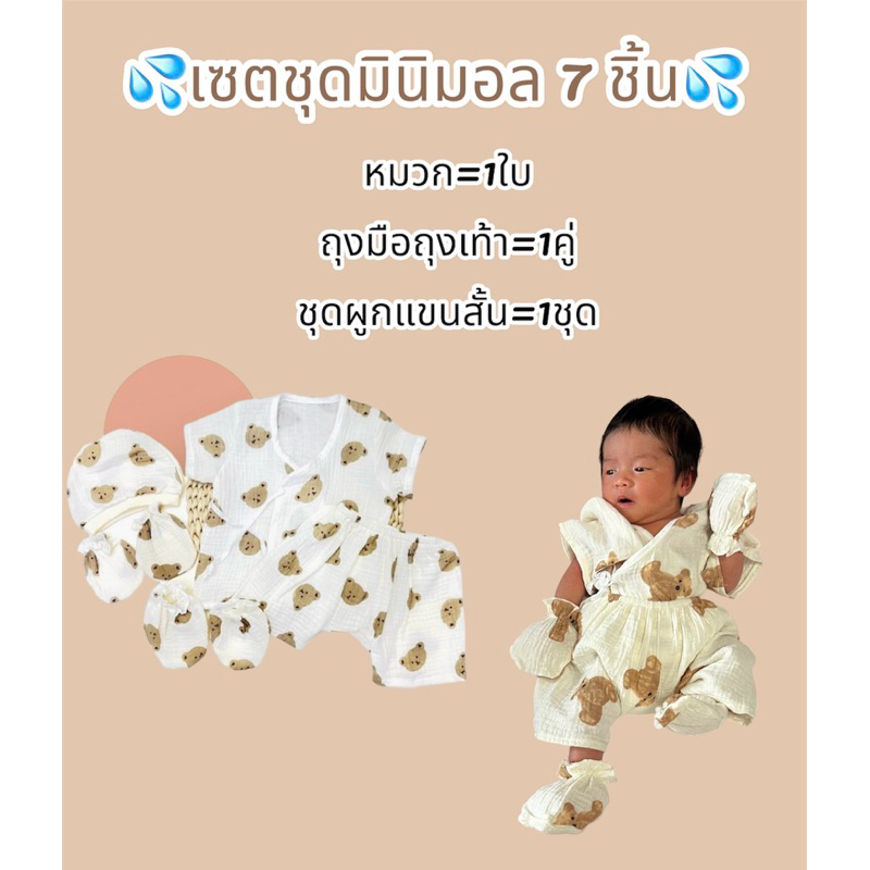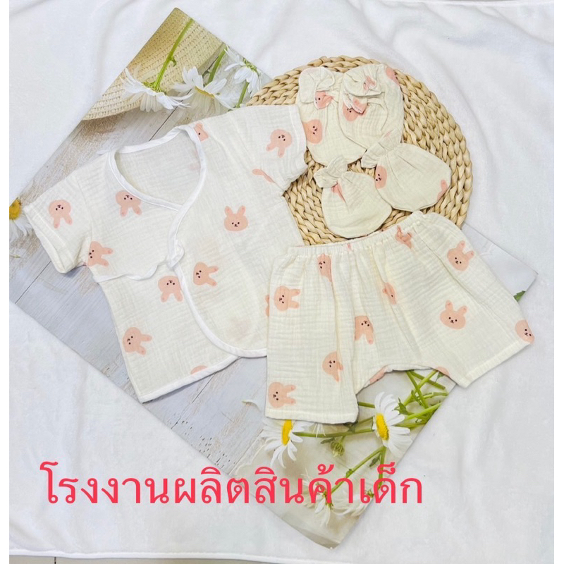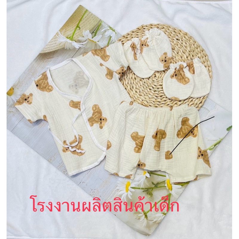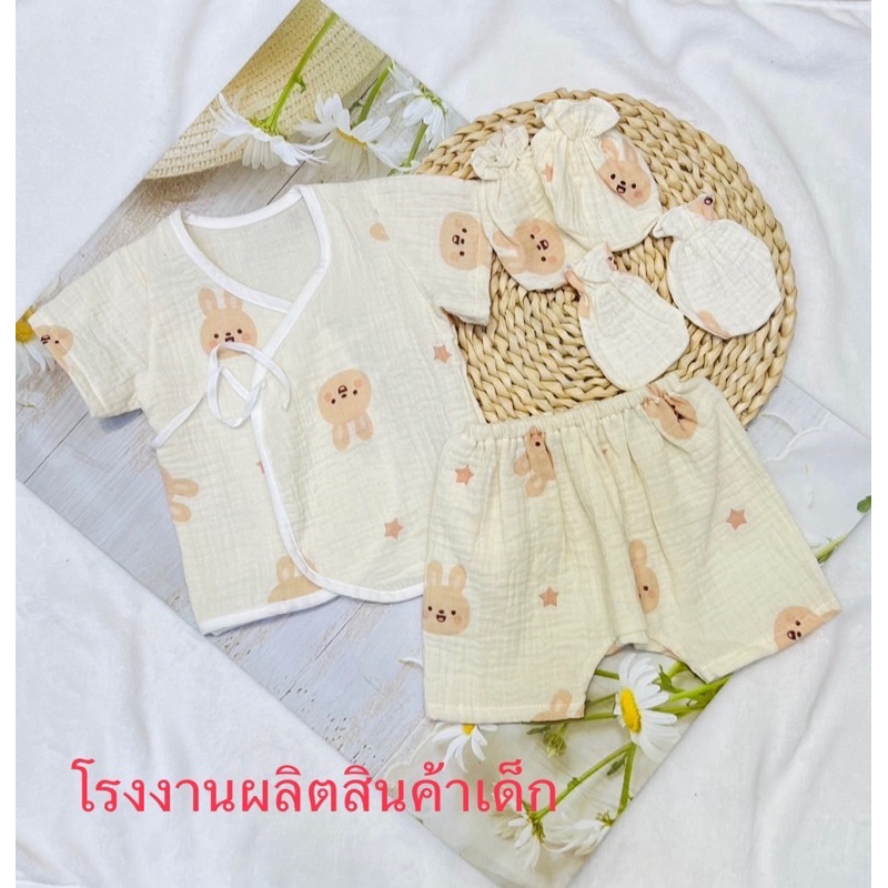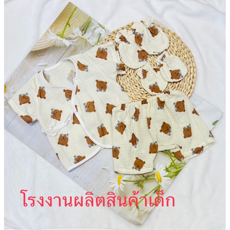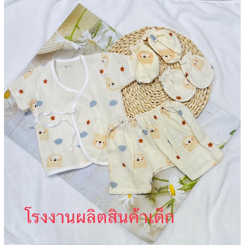 โปรเซตชุด 7ชิ้น #เด็กแรกเกิด ( ชุดผูกแขขนสั้น+หมวก+ถุงมือถุงเท้า)