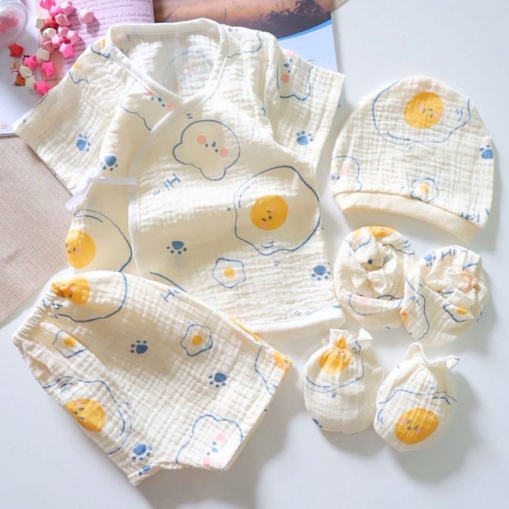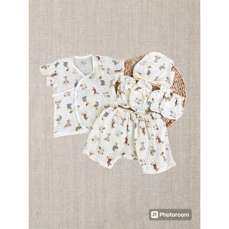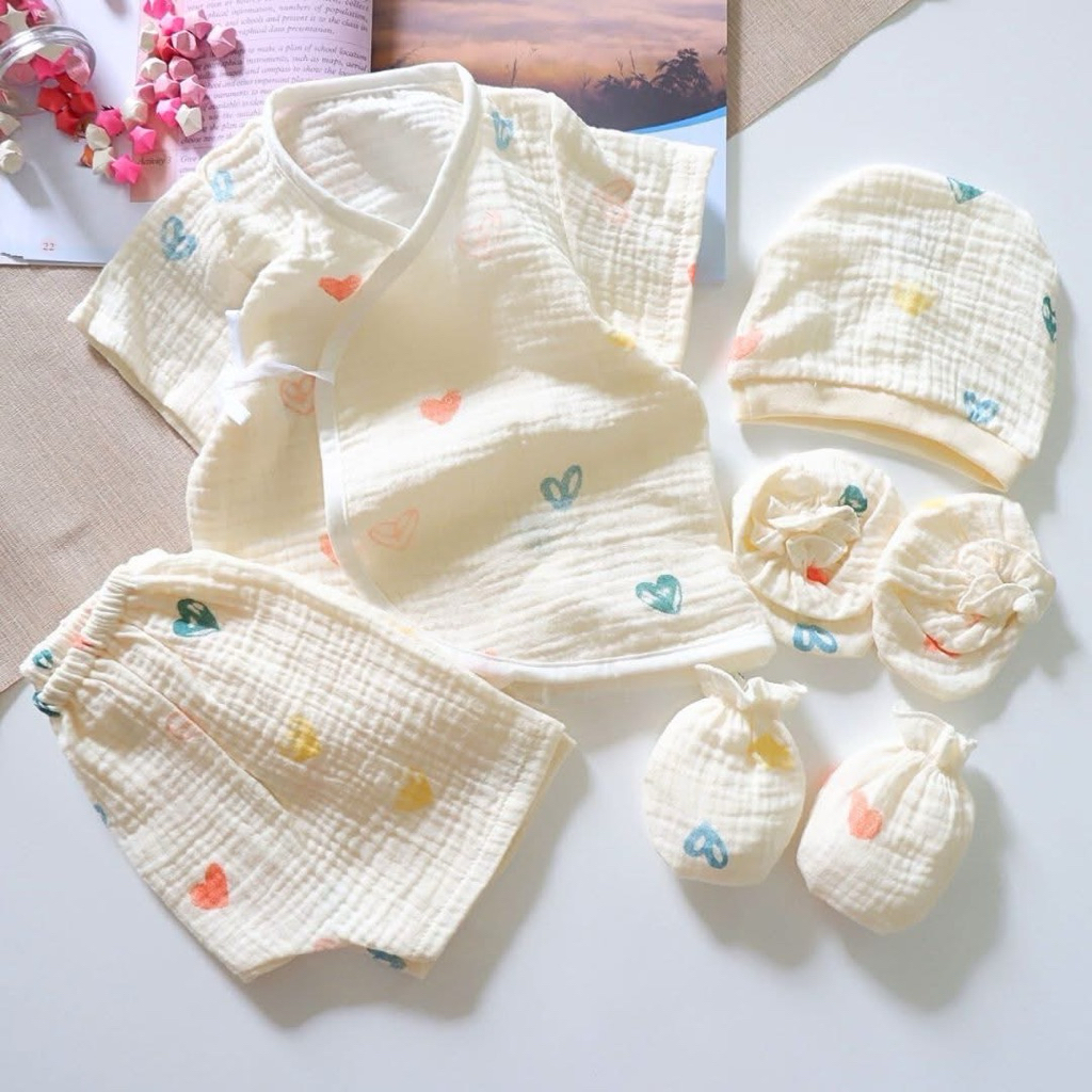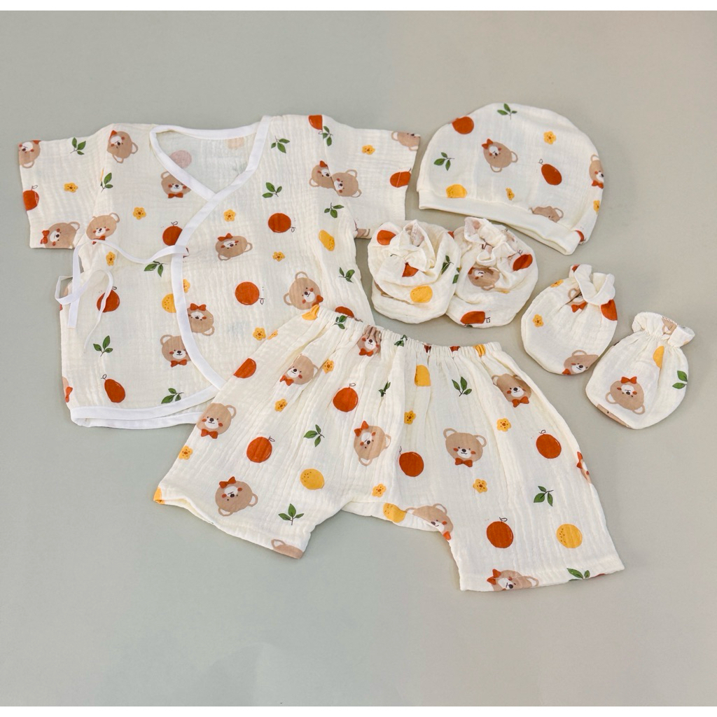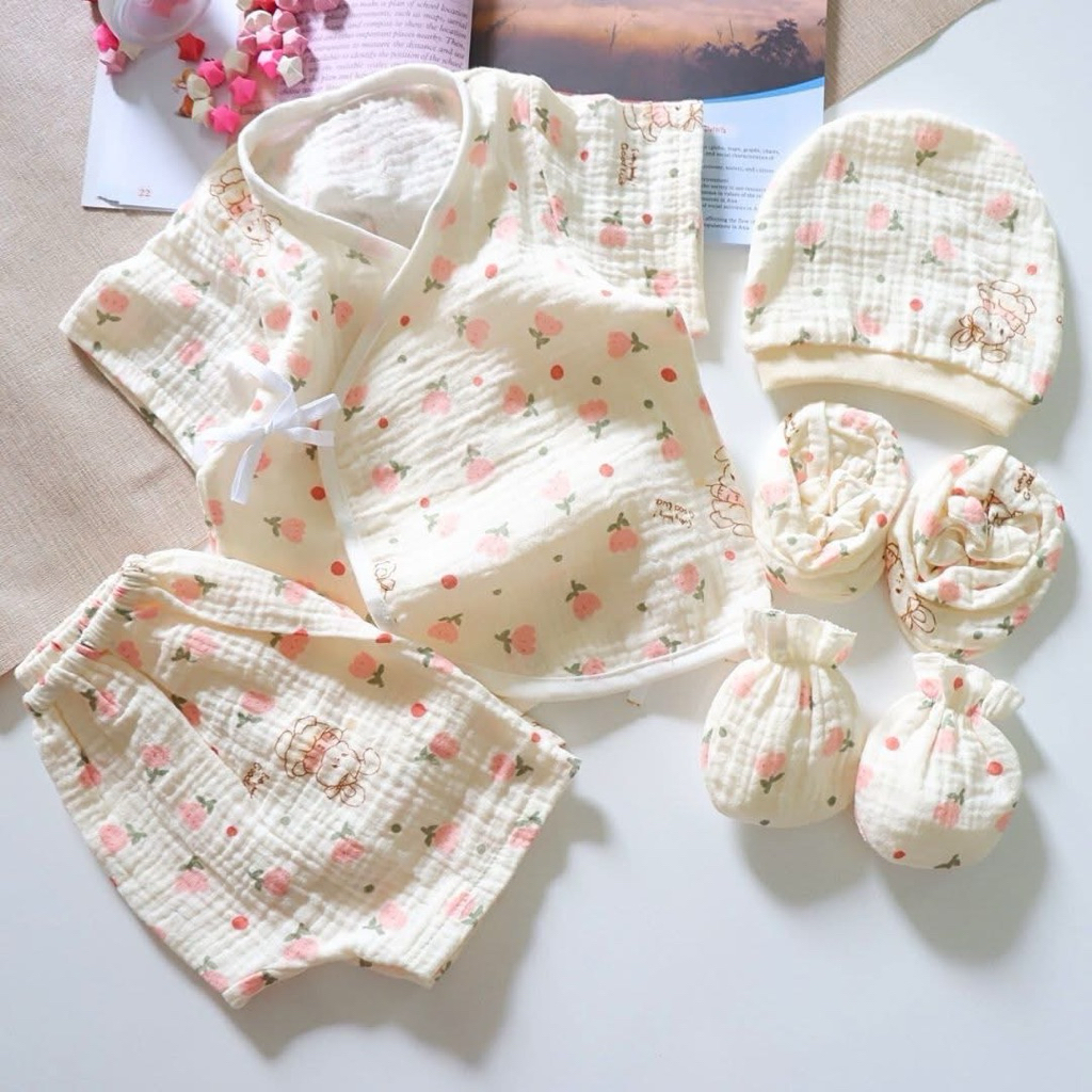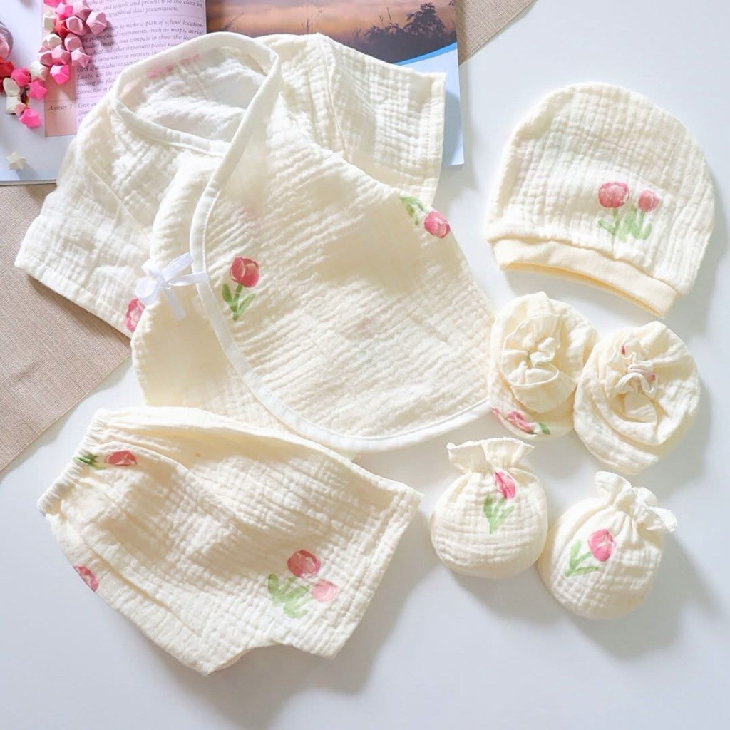 โปรเซตชุด 7ชิ้น #เด็กแรกเกิด ( ชุดผูกแขขนสั้น+หมวก+ถุงมือถุงเท้า)