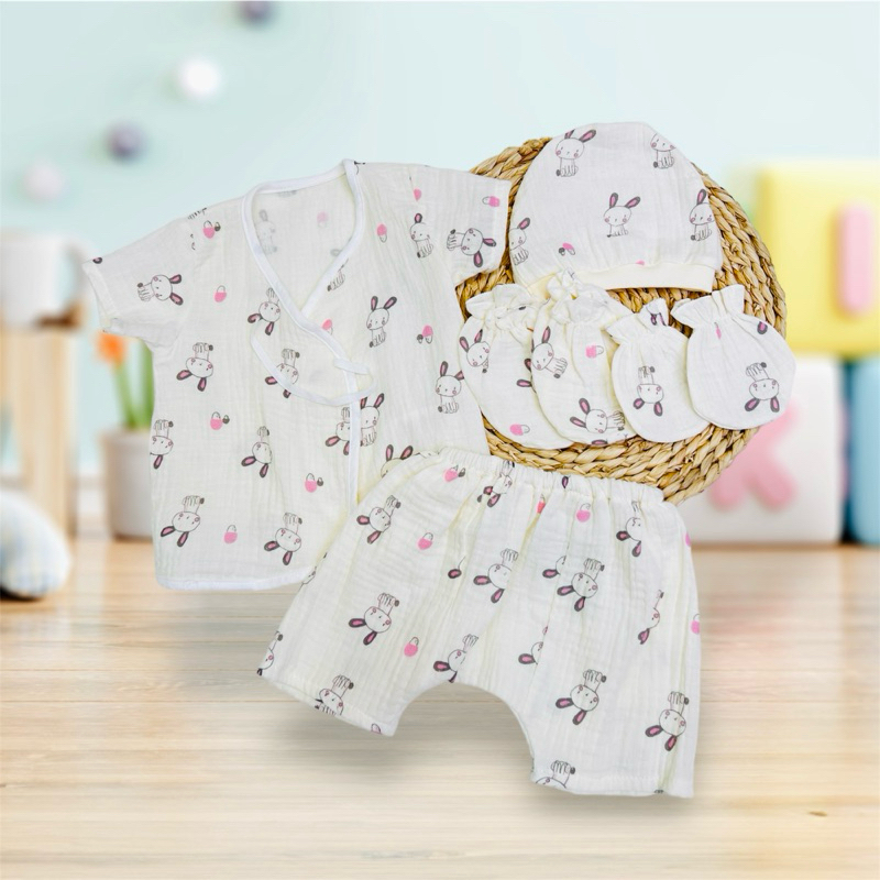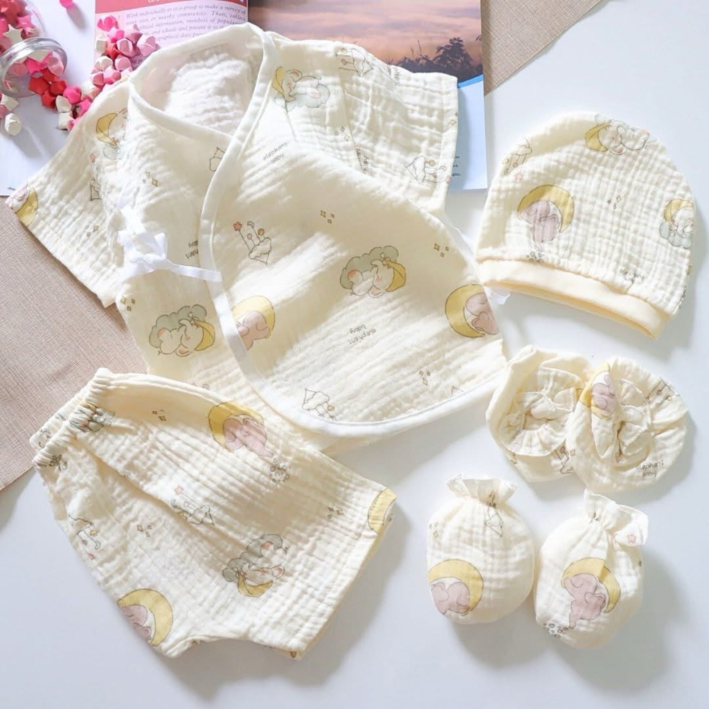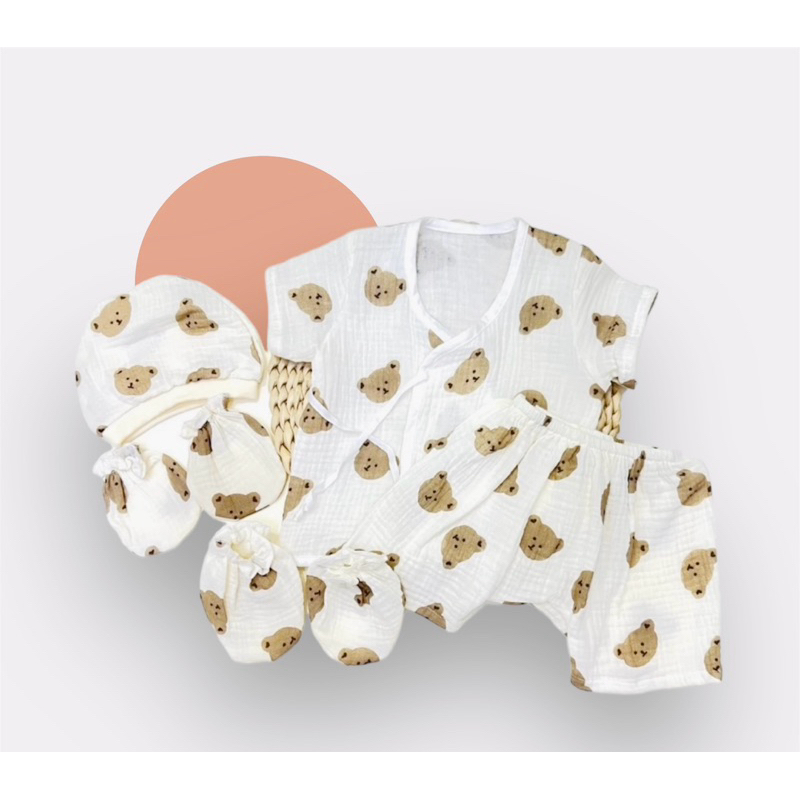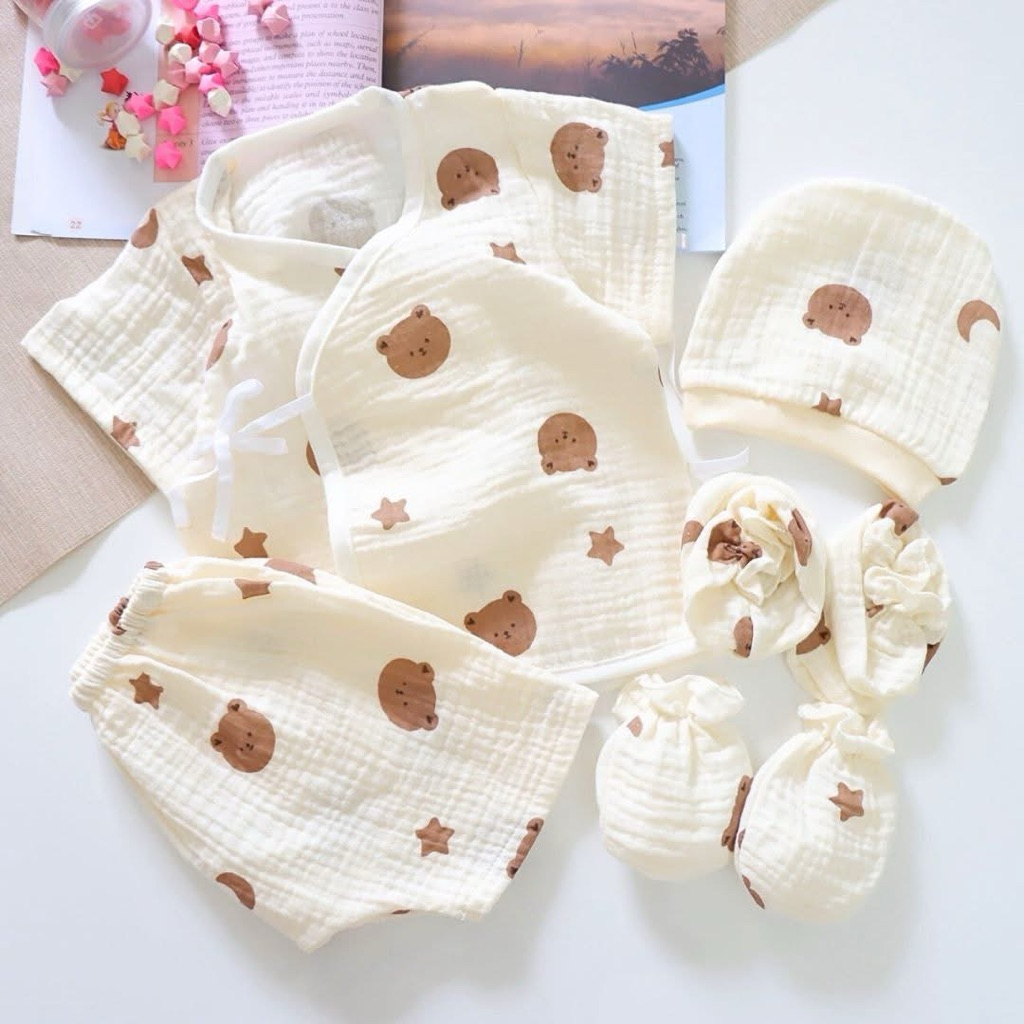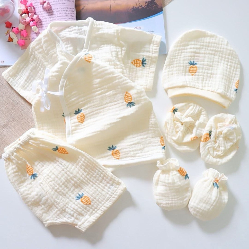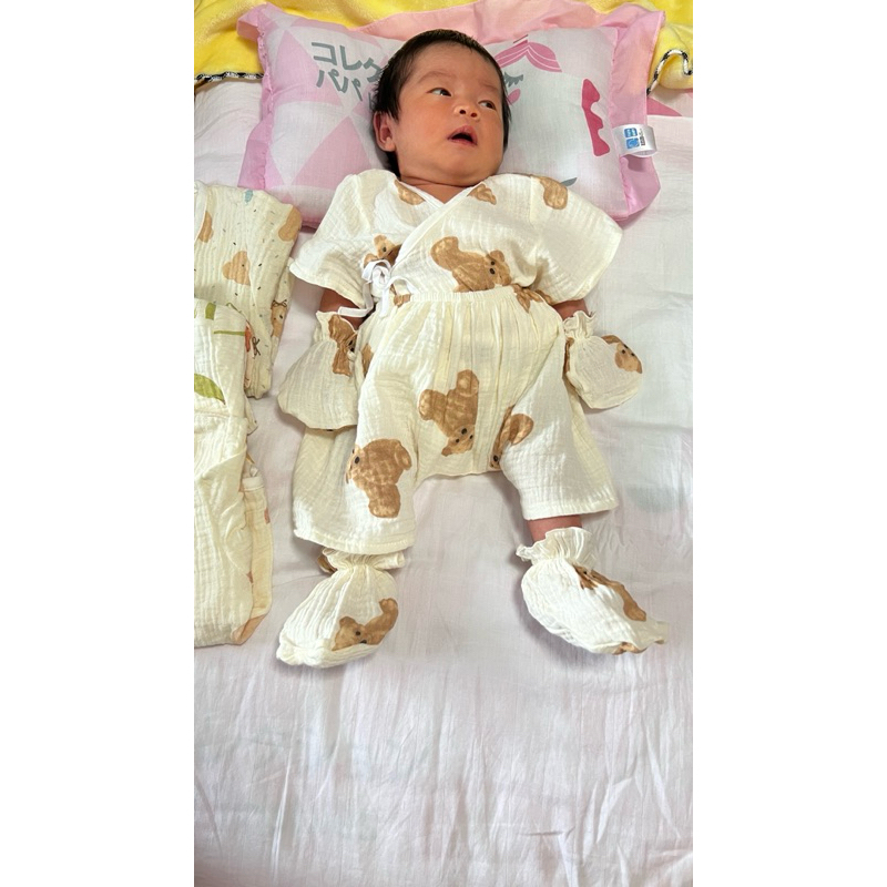 โปรเซตชุด 7ชิ้น #เด็กแรกเกิด ( ชุดผูกแขขนสั้น+หมวก+ถุงมือถุงเท้า)