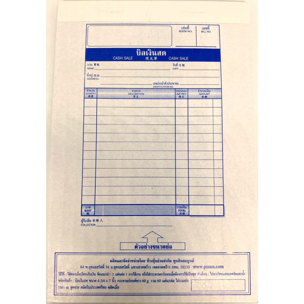 (KTS)บิลเงินสด พูนสินสมบูรณ์ ชนิดไม่มีสำเนาในตัว No.2 ประเภท 1 ชั้น