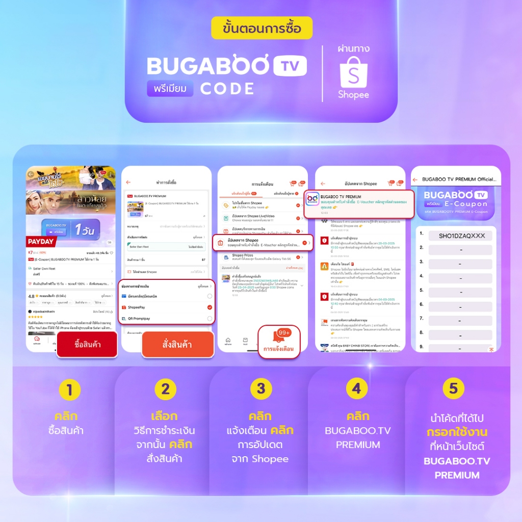 [E-Coupon] BUGABOO.TV PREMIUM Code ใช้งาน 3 วัน