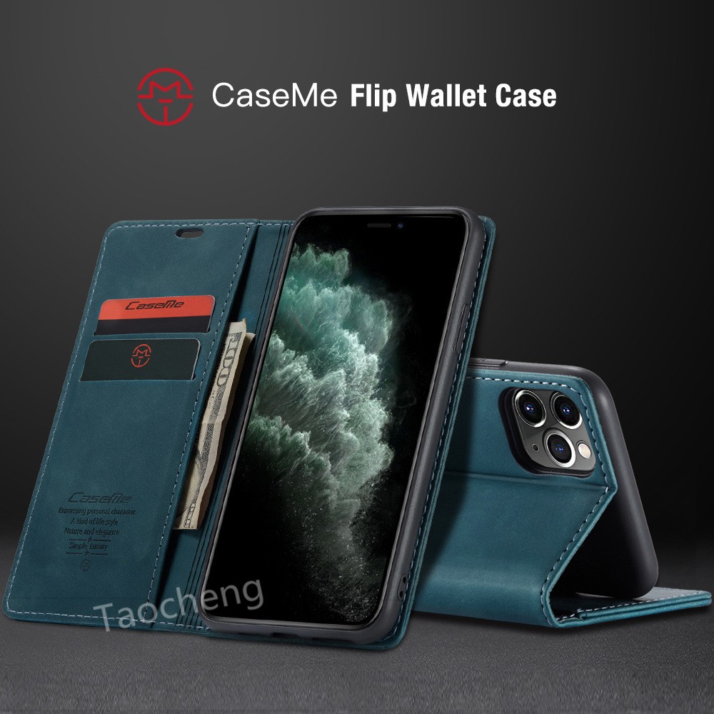 เคสหนังฝาพับ เคสหนังฝาพับ CaseMe iPhone 13 12 11 Pro Max Mini 12Pro 12ProMax Card Slot Phone Case iPhone11 iPhone12 PU Luxury Magnetic Leather Wallet Flip Cover Business Stand Casing Holder