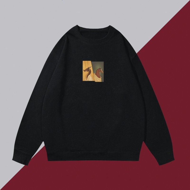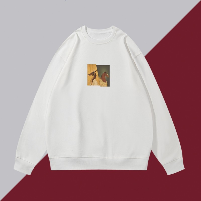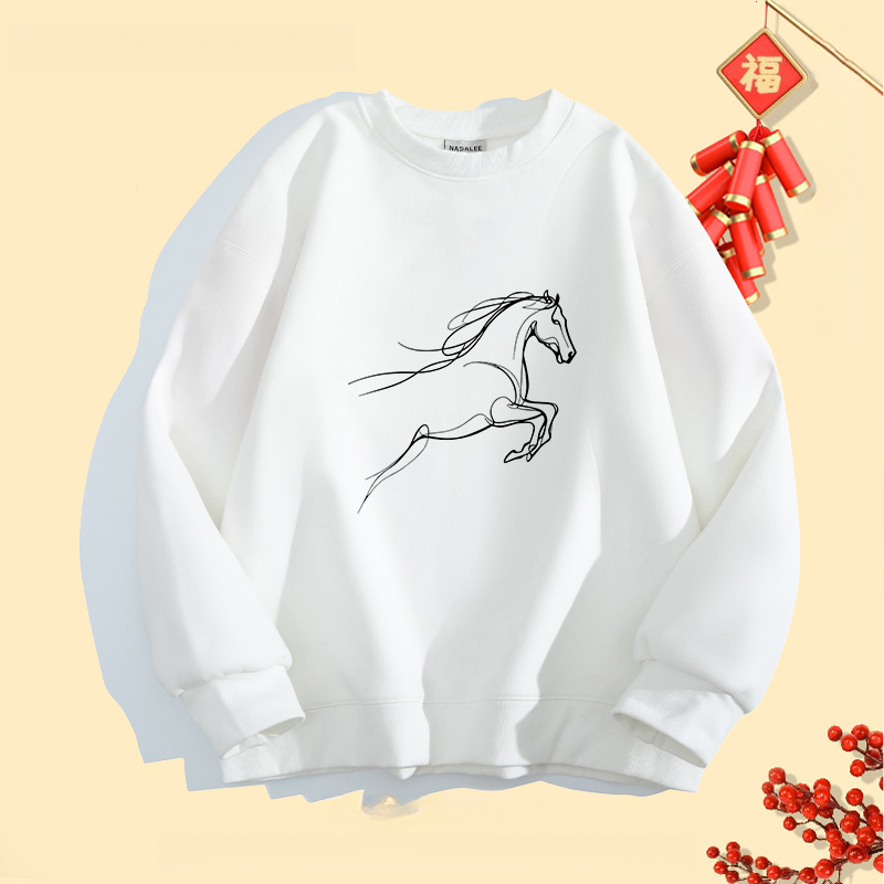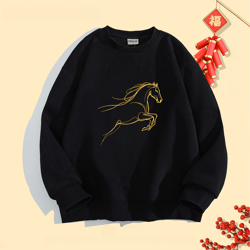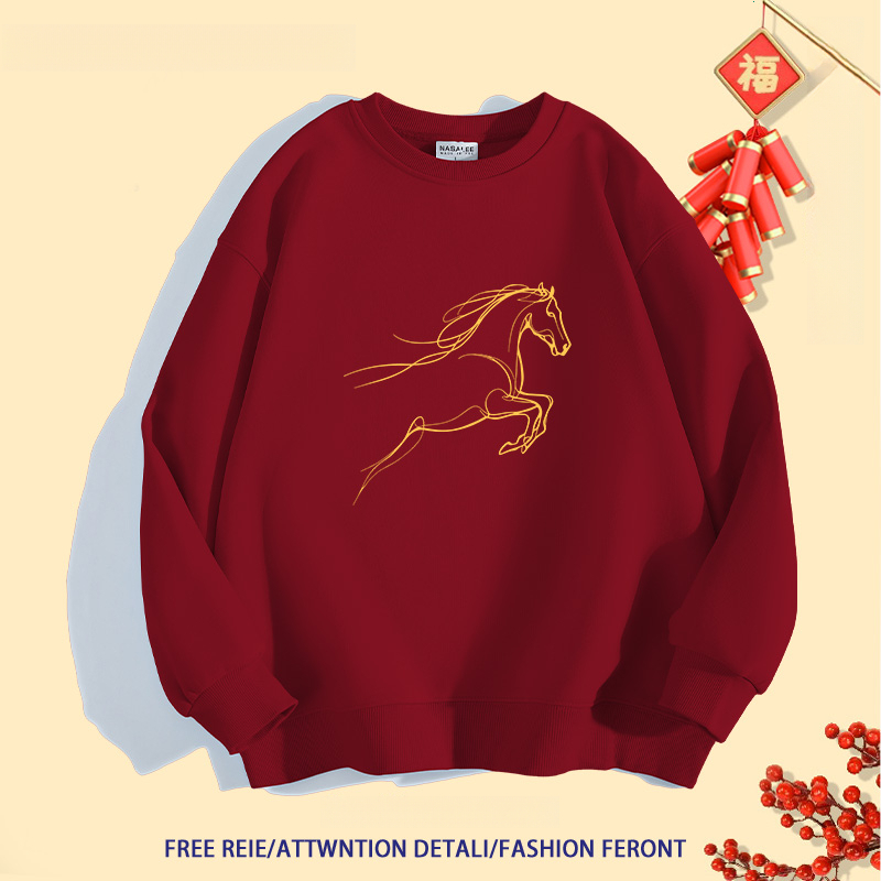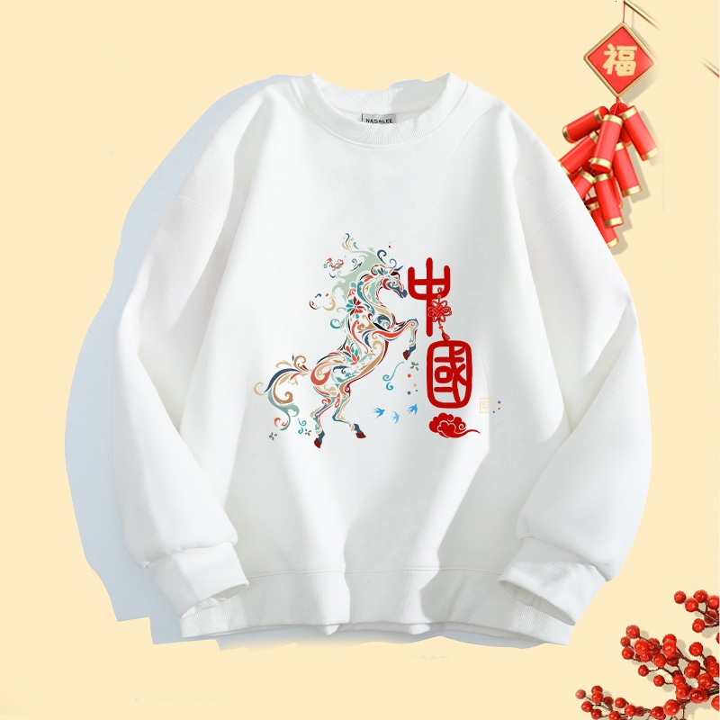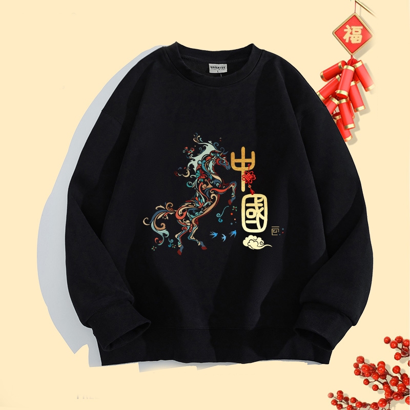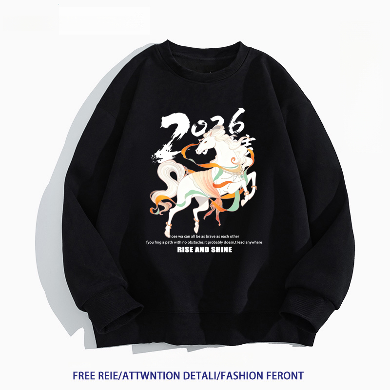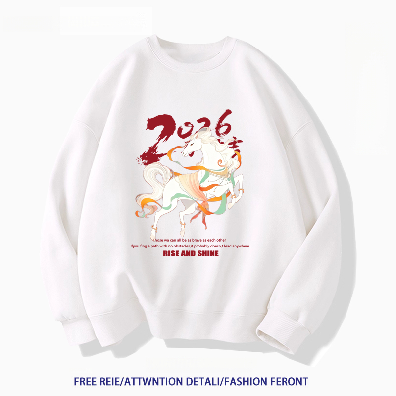2026ปีใหม่สไตล์จีนเก๋ไก๋คอกลมsweatshirtsปีม้าพิมพ์ลายlong sleevesเสื้อ oversizeฤดูใบไม้ร่วงเสื้อคู่ใส่สบายเสื้อสเวตเตอร์