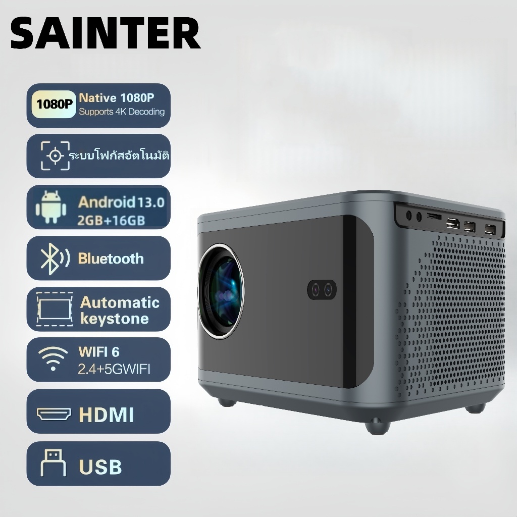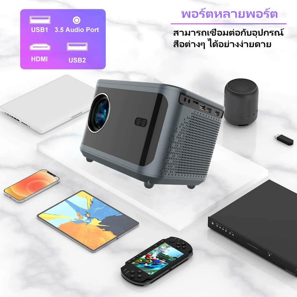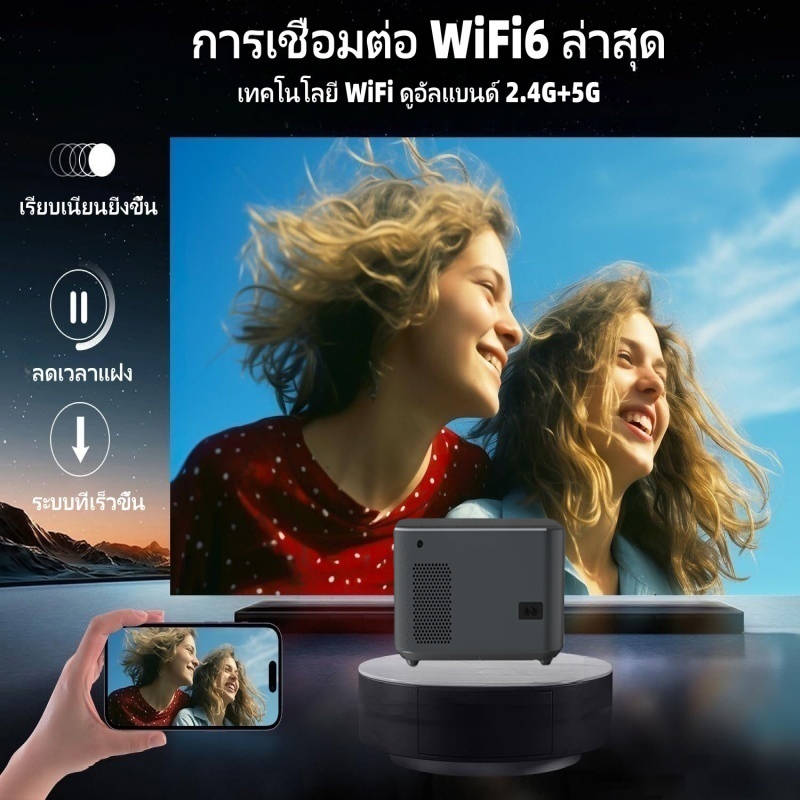 โปรเจคเตอร์ 4k อัตโนมัติเต็มรูปแบบ, ปุ่มสัมผัส, โปรเจคเตอร์ 1080p, ติดตั้งระบบปฏิบัติการ Android 13, โปรเจคเตอร์แบบพกพาระดับไฮเอนด์, รองรับ WiFi 6 และ Bluetooth 5.2, สามารถเชื่อมต่ออุปกรณ์ต่างๆเช่นโทรศัพท์มือถือคอมพิวเตอร์ ฯลฯ