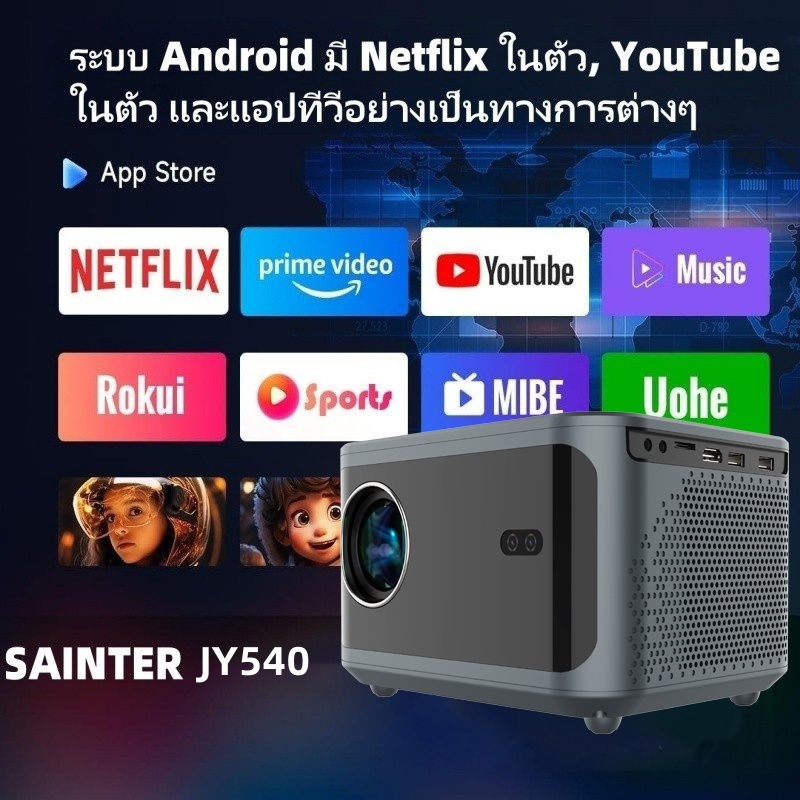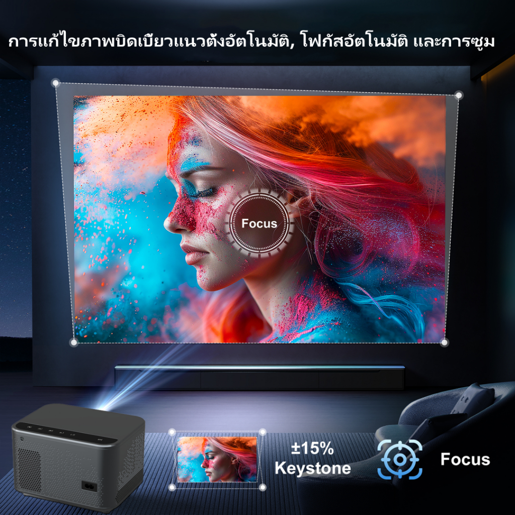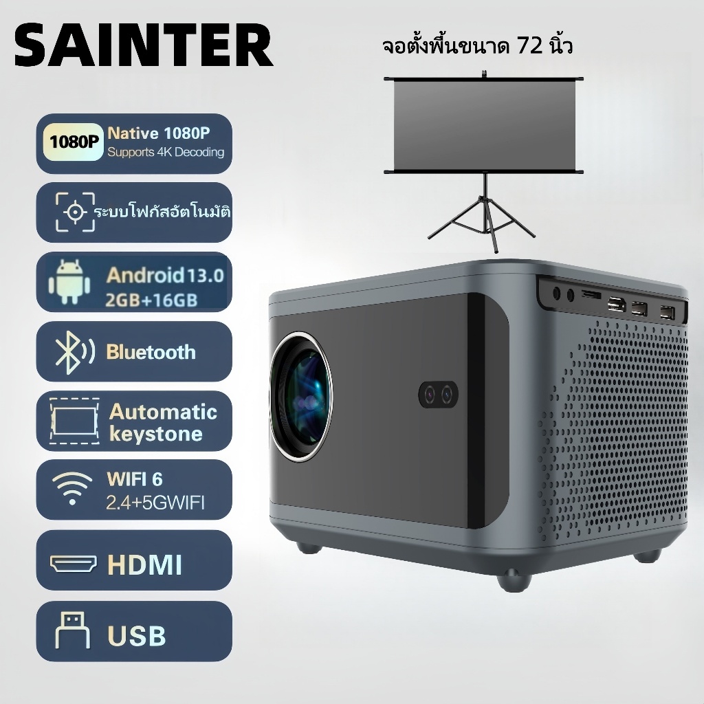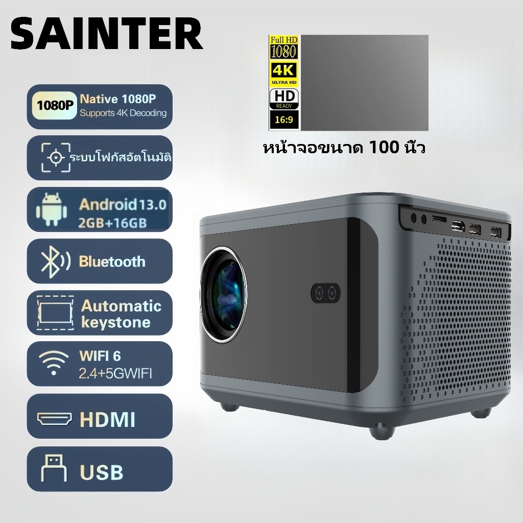 โปรเจคเตอร์ 4k อัตโนมัติเต็มรูปแบบ, ปุ่มสัมผัส, โปรเจคเตอร์ 1080p, ติดตั้งระบบปฏิบัติการ Android 13, โปรเจคเตอร์แบบพกพาระดับไฮเอนด์, รองรับ WiFi 6 และ Bluetooth 5.2, สามารถเชื่อมต่ออุปกรณ์ต่างๆเช่นโทรศัพท์มือถือคอมพิวเตอร์ ฯลฯ