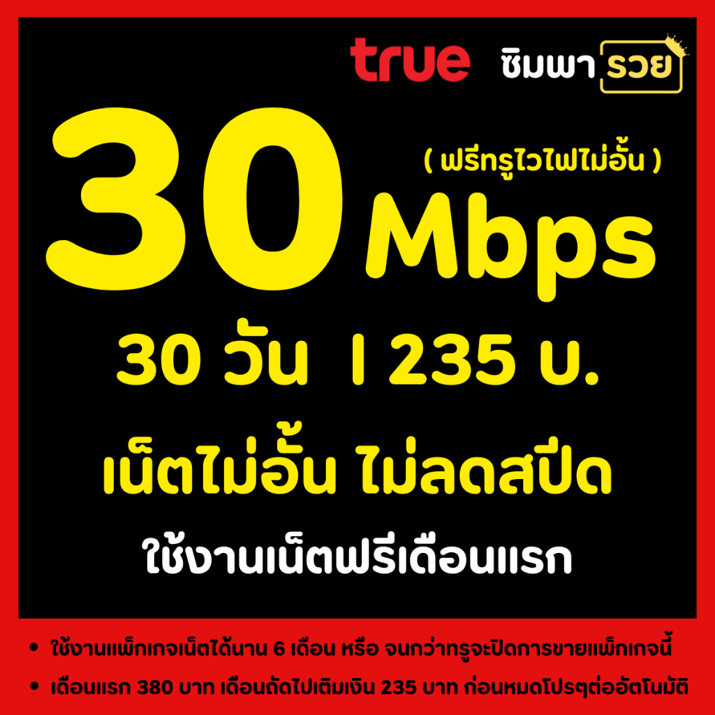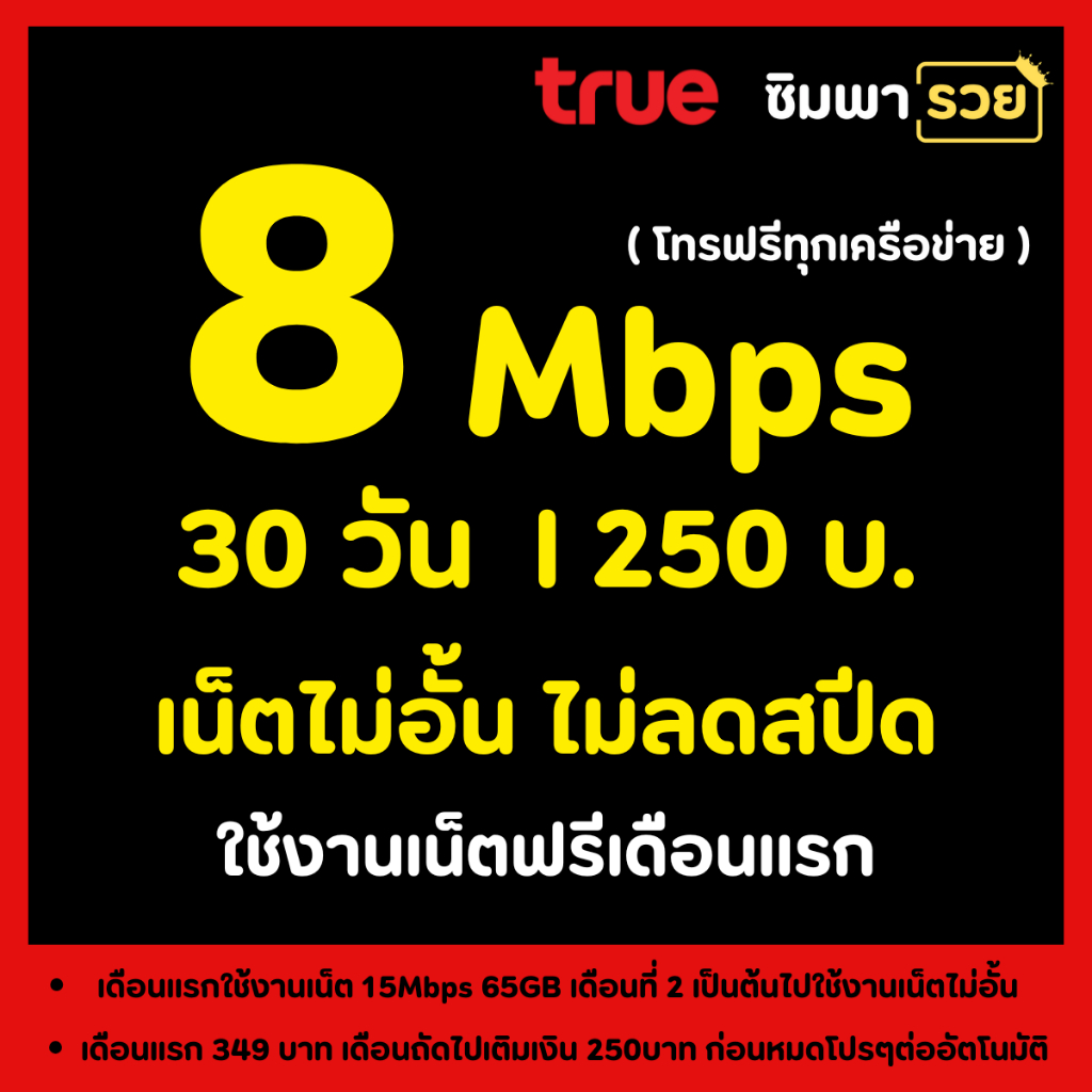 ซิมเทพทรู ซิมเน็ตไม่อั้น ไม่ลดสปีด ไม่จำกัดปริมาณ GB ความเร็วเน็ต 2 Mbps ถึง 1000 Mbps + โทรฟรีไม่อั้นทุกเครือข่าย