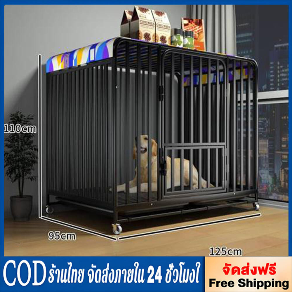 กรงสุนัขใหญ่ๆ XXL กรงหมา กรงสุนัข มีล้อล็อคได้ พร้อมถาดพลาสติก ครอบคลุมท่อสี่เหลี่ยมสังกะสี 6 ด้าน กรงสุนัขขนาดใหญ่