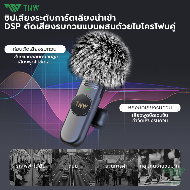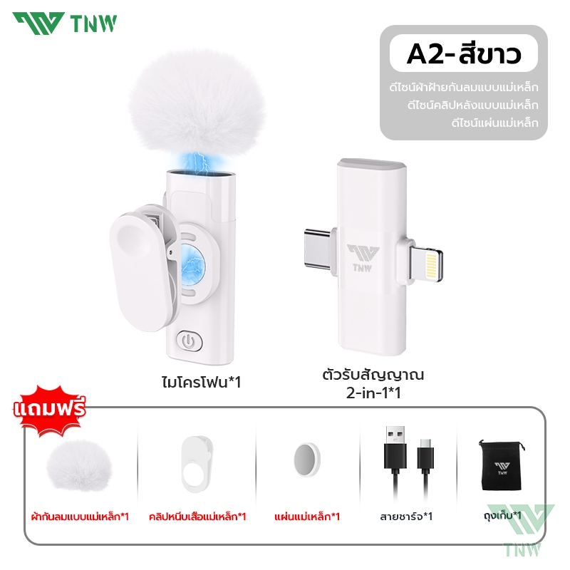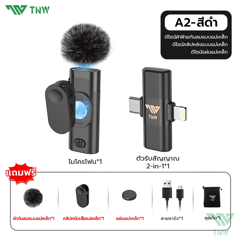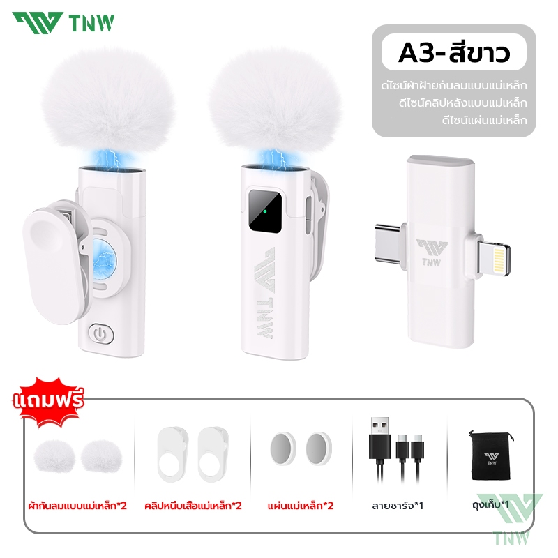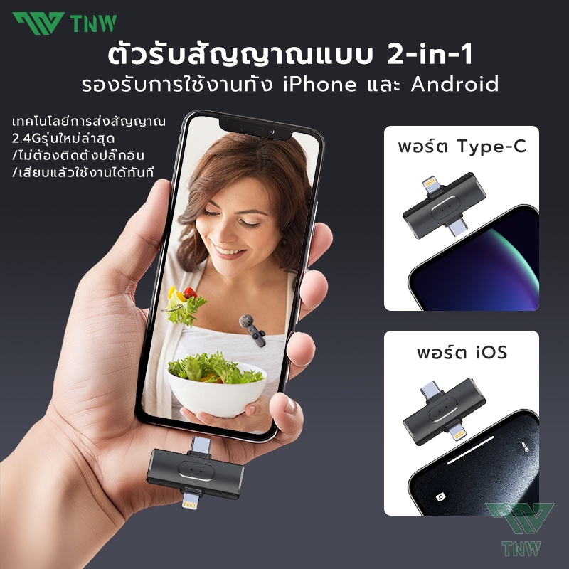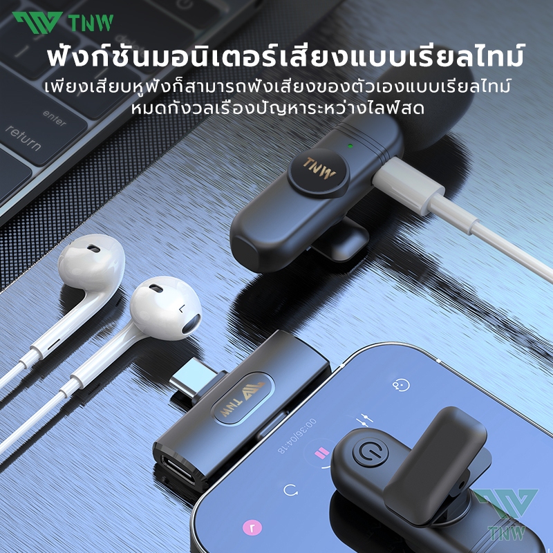 TNW W16/W17 ไมค์ไร้สาย การตัดเสียงรบกวนอัจฉริยะ ไมค์หนีบปกเสื้อ รองรับ IOS/Type-C ถ่ายทอดสด/บันทึกวิดีโอ/บันทึกเสียง