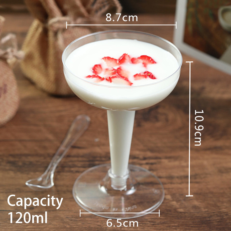 10pcs ถ้วยมูสเท้าสูงทิ้ง ถ้วยขนมหวานพลาสติกใส Disposable Tableware