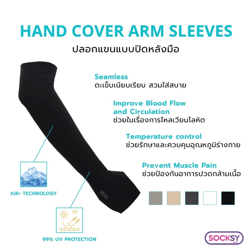 SOCKSY ปลอกแขนกันแดด UV ผ้าหนานุ่ม ใส่ขับรถ กลางแจ้ง กันแดดจัด ใส่ได้ชายหญิง Slim UV Protection AIR+
