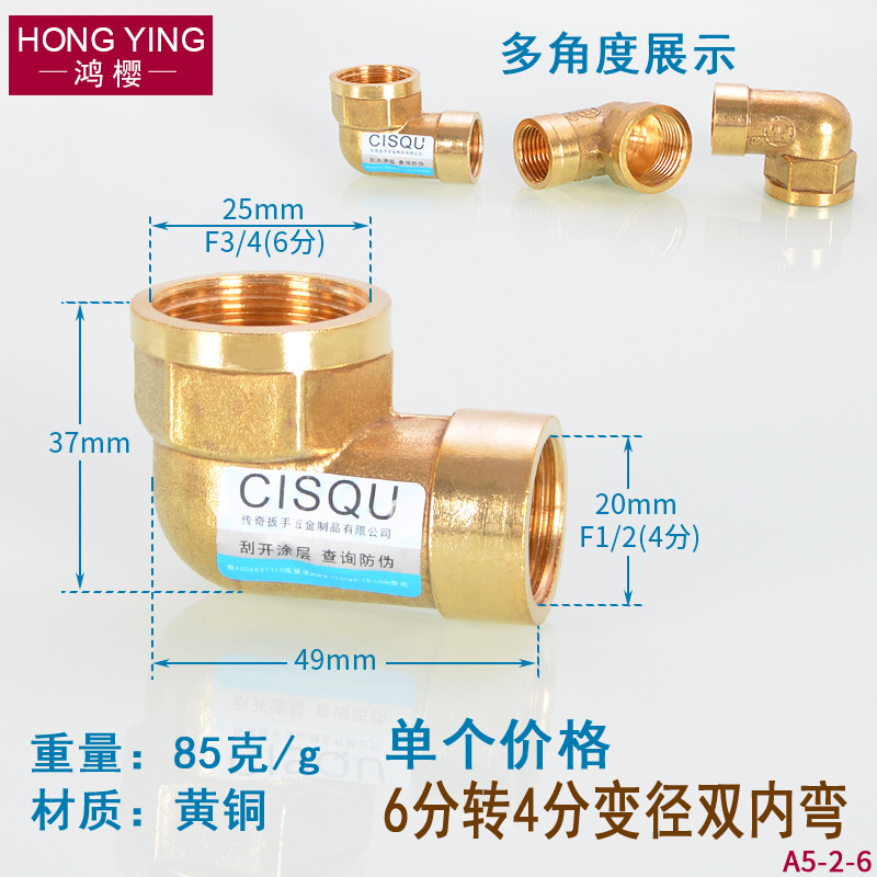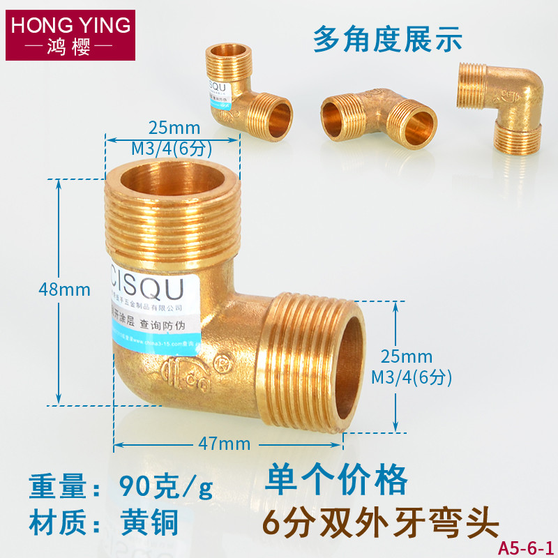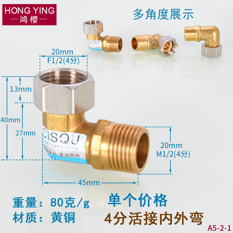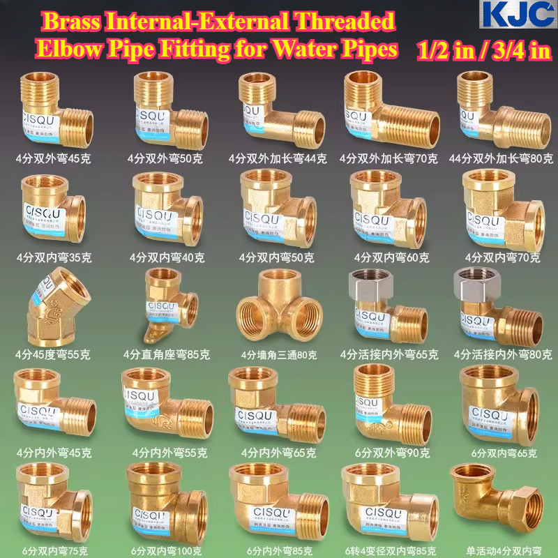 [เคซี-เฮ้] ข้อต่อท่อข้อศอกเกลียวภายใน-ภายนอกทองเหลืองสําหรับท่อน้ํา (1/2 นิ้ว / 3/4 นิ้ว) 45 องศาและ 90 องศา