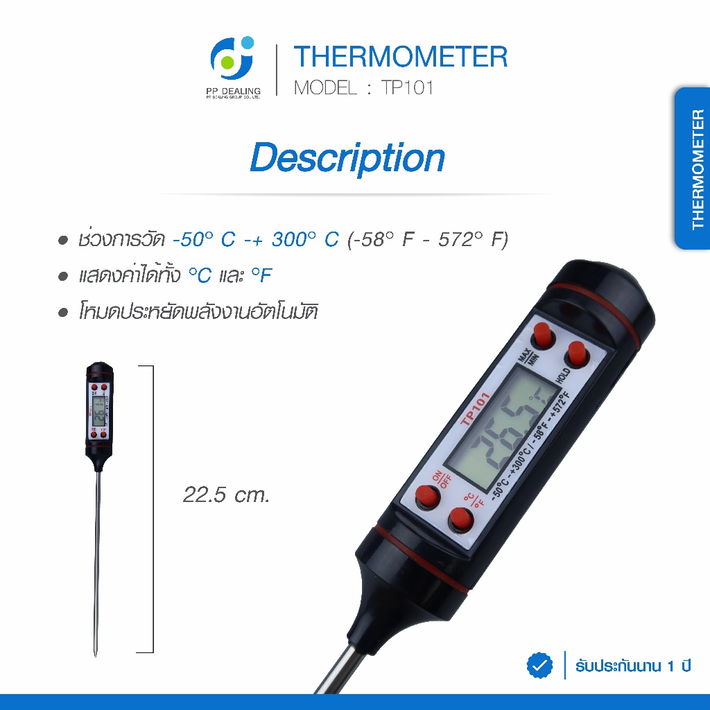 Digital Thermometer รุ่น TP101 (WIN-THML3001) เทอร์โมมิเตอร์สำหรับวัดอุณหภูมิ อาหาร และใช้ในห้องแล็ป