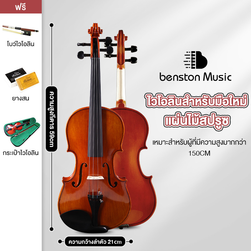Benston ไวโอลินเด็กผู้ใหญ่นักเรียนระดับเริ่มต้น ฝึกเล่นไวโอลินมืออาชีพไม้เนื้อแข็งขนาด 4/4เหมาะสำหรับผู้ที่มีความสูงเกิน