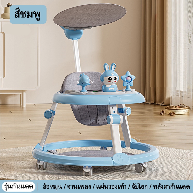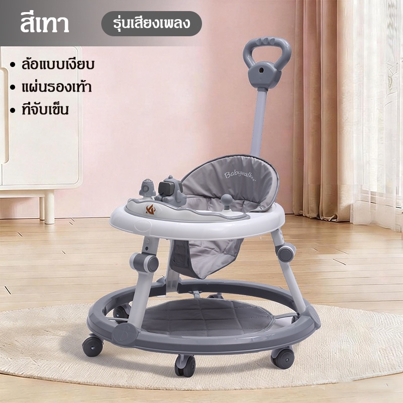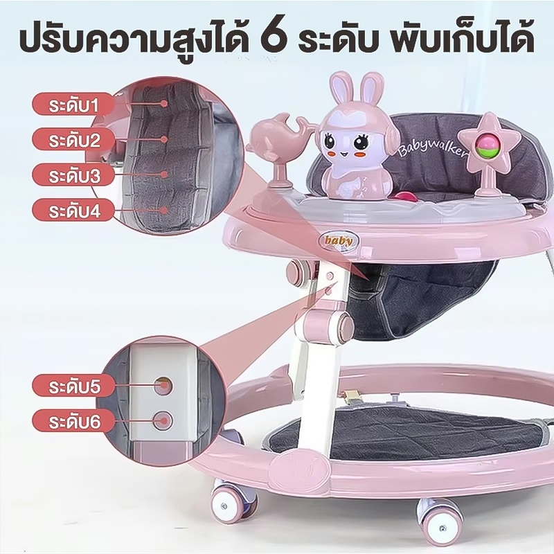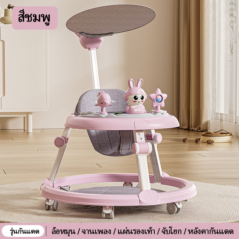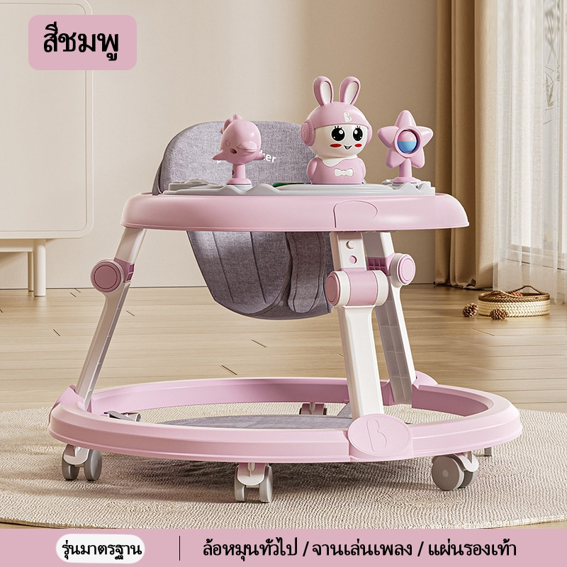 รถหัดเดินเด็ก รถฝึกเดินสำหรับเด็ก ป้องกันขาโก่ง ปรับได้ พับเก็บ พร้อมเสียงดนตรี+ของเล่น 6-18 เดือน