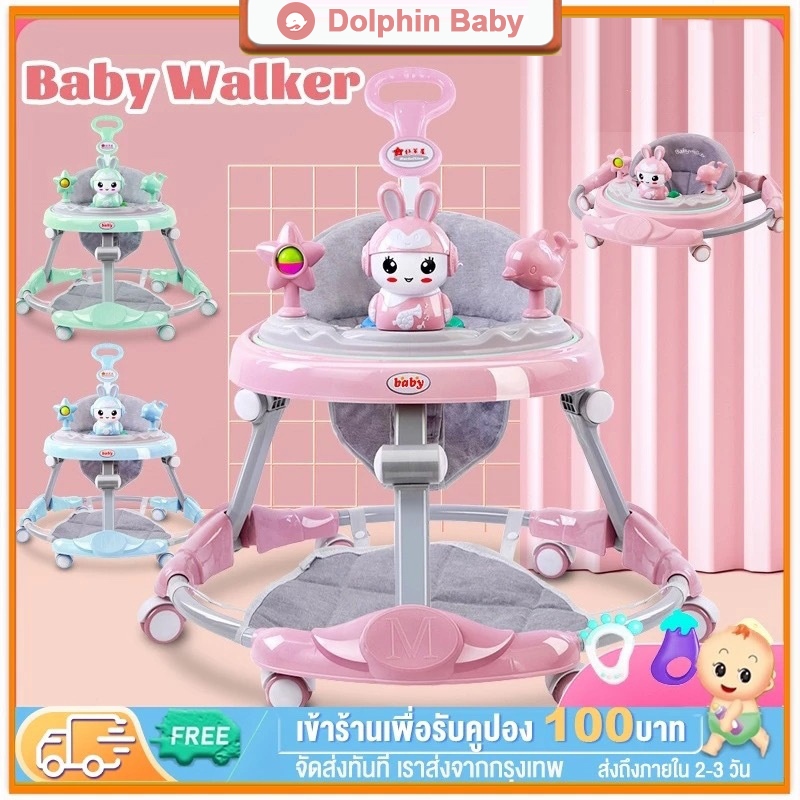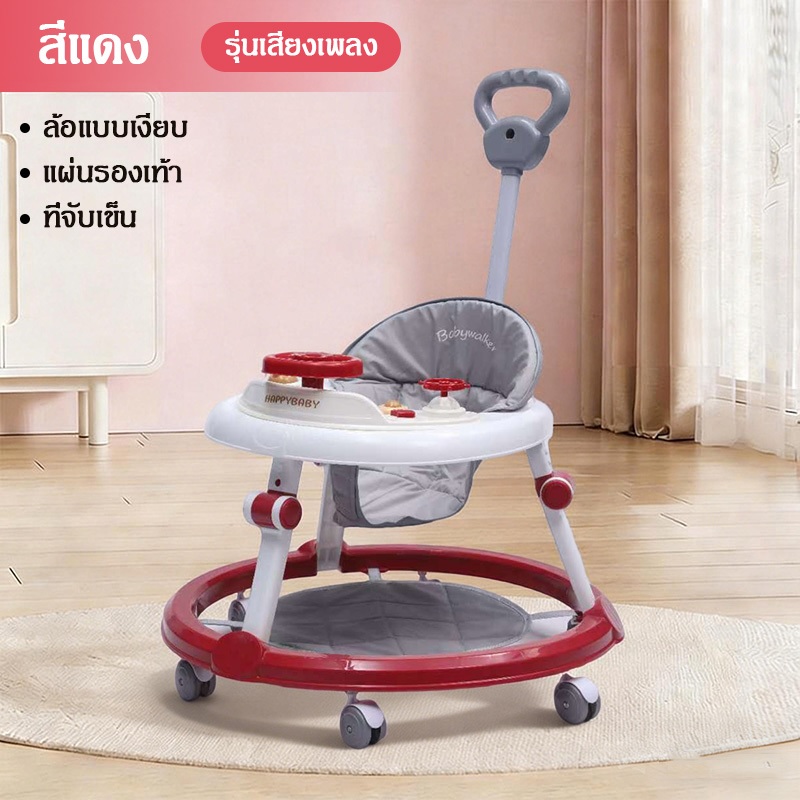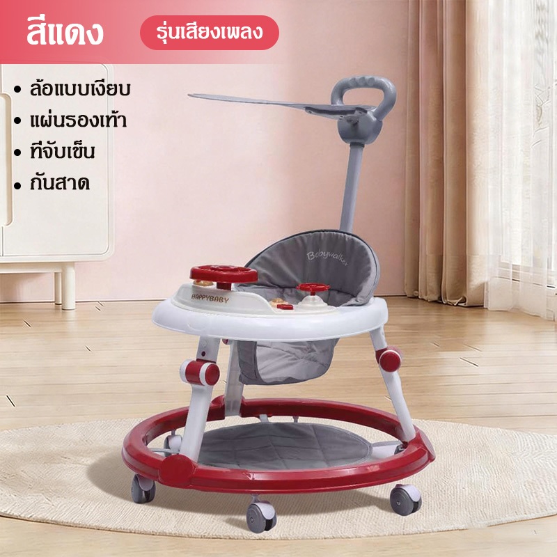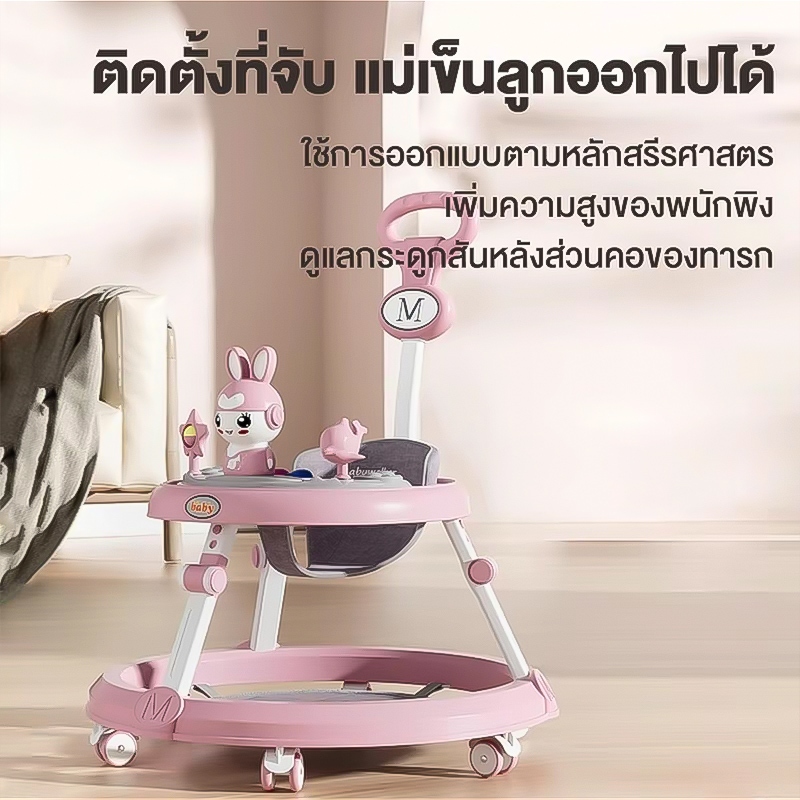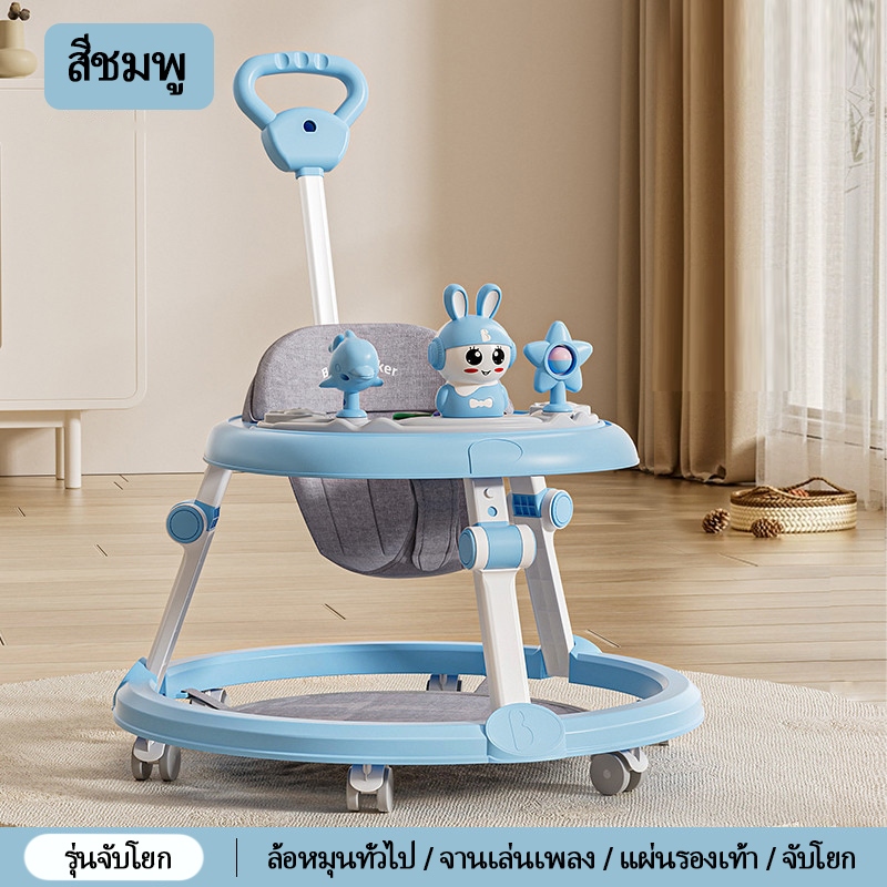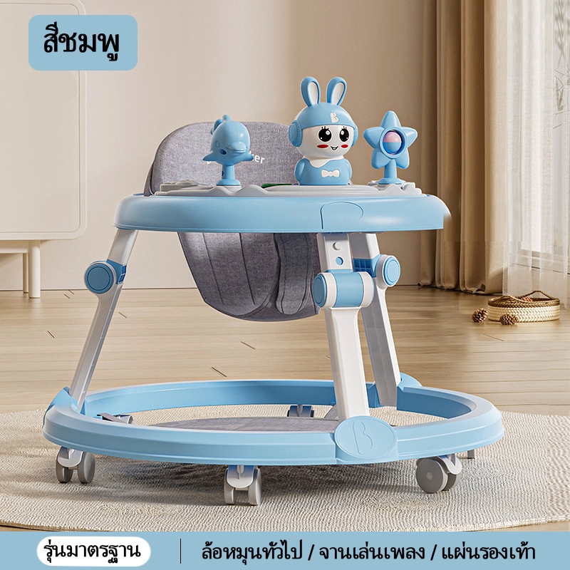 รถหัดเดินเด็ก รถฝึกเดินสำหรับเด็ก ป้องกันขาโก่ง ปรับได้ พับเก็บ พร้อมเสียงดนตรี+ของเล่น 6-18 เดือน