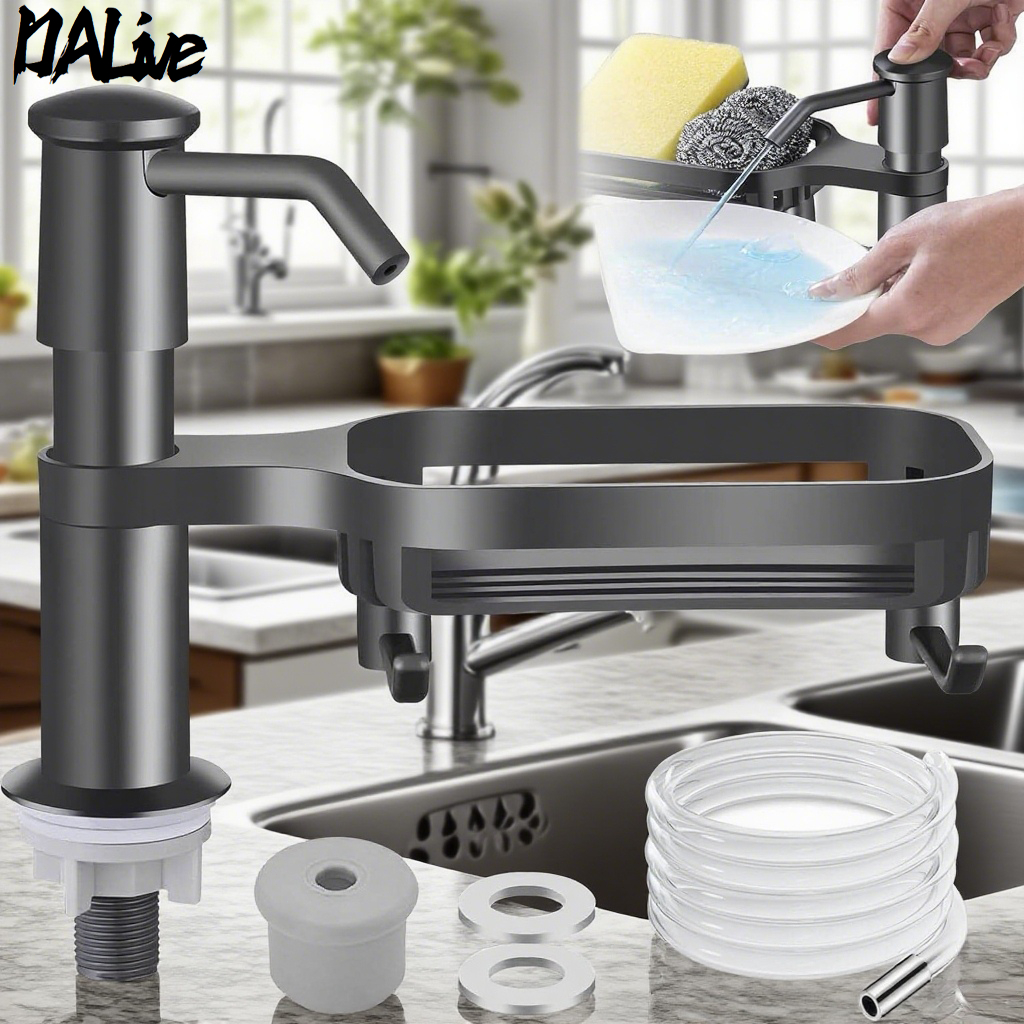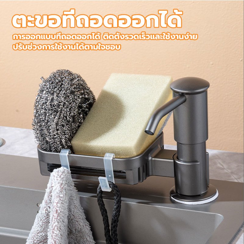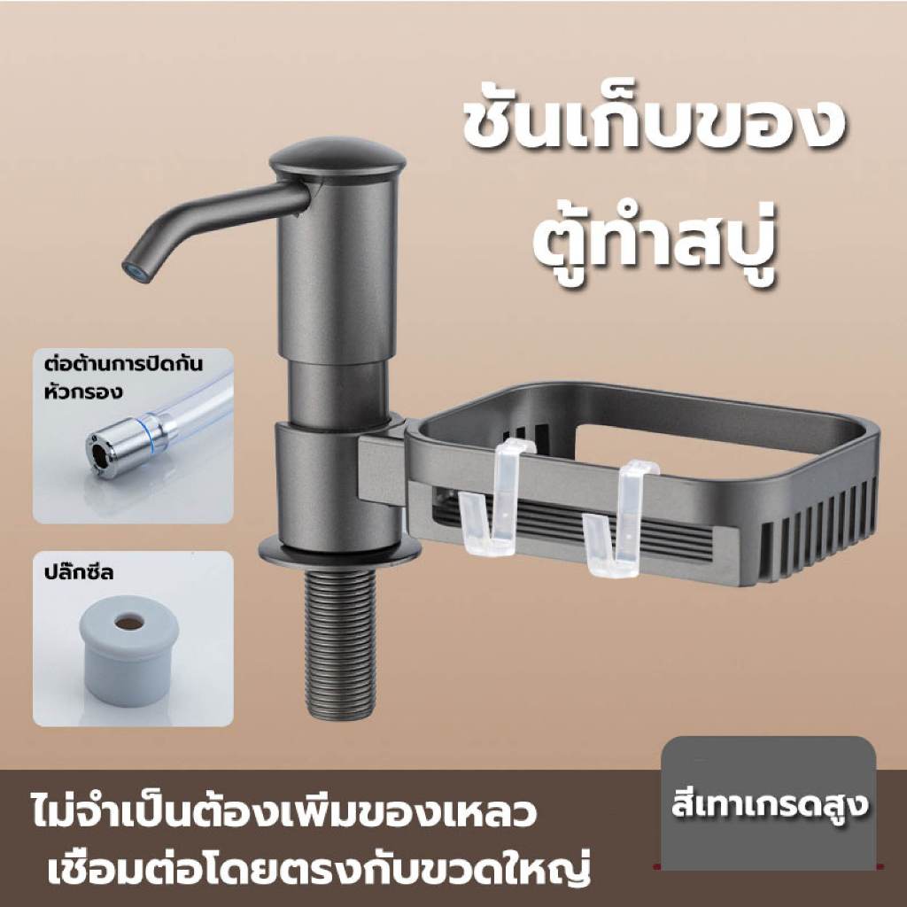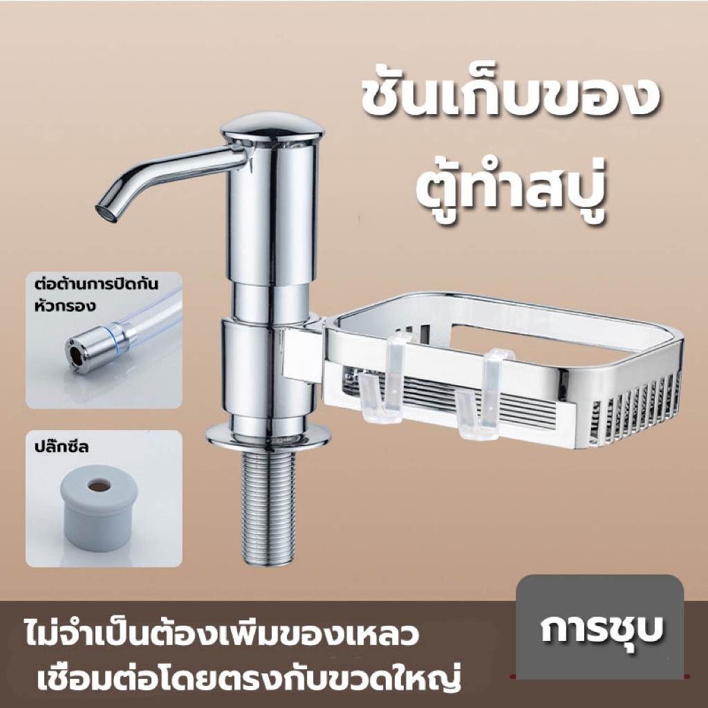 หัวปั้มน้ำยาล้างจา ก๊อกกดน้ำยาล้างจาน ไม่เป็นสนิม ชั้นวางของ ใส่สบู่เหลว ฝังซิงค์