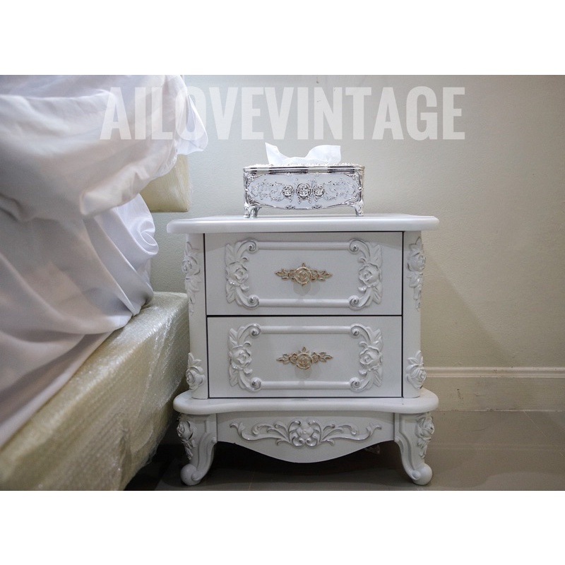ไม่ต้องประกอบเอง‼️ตู้ข้างเตียง ตู้ข้างเตียงวินเทจ ตู้เจ้าหญิง พร้อมส่ง‼️
