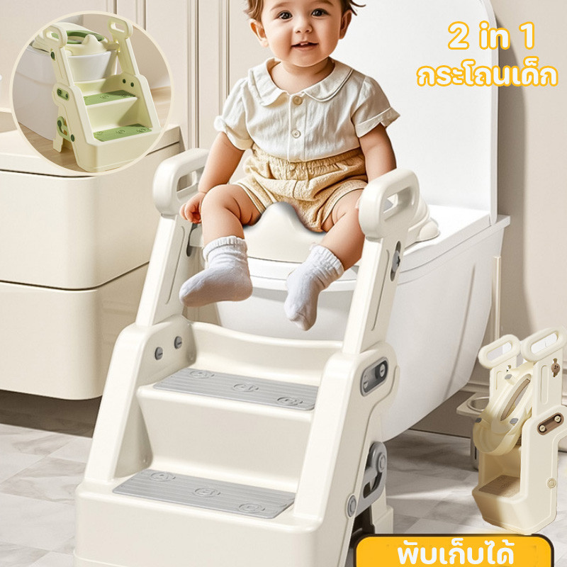 COD 2 in 1กระโถนเด็ก พับ บันไดชักโครกเด็ก มีบันไดปีนขึ้นและพักเท้าได้