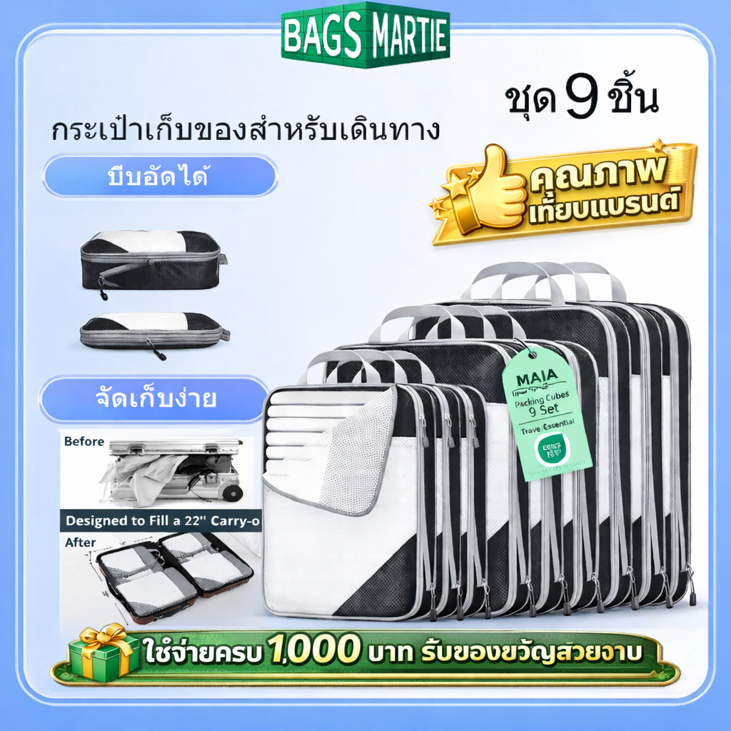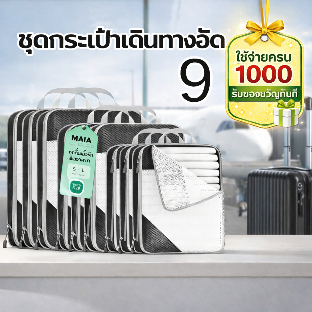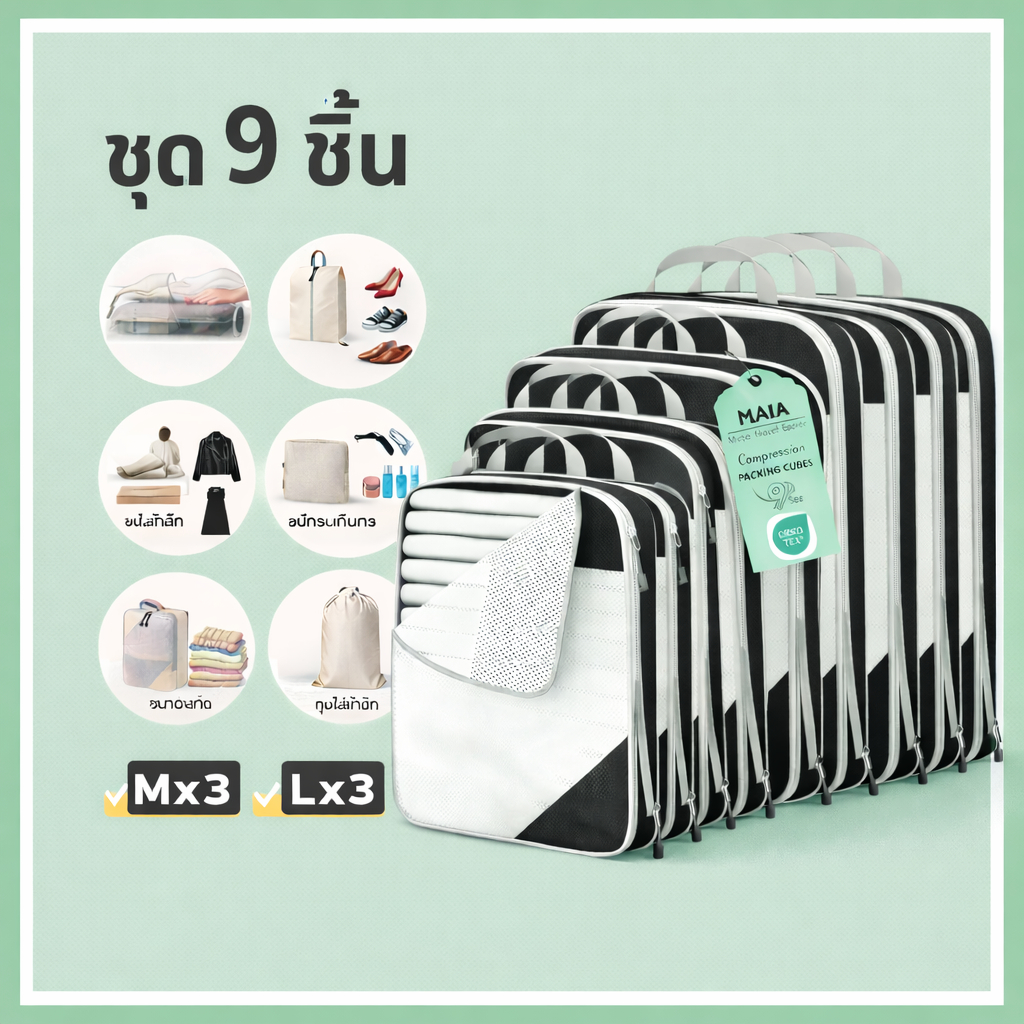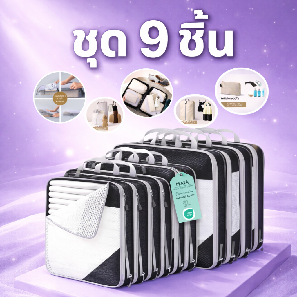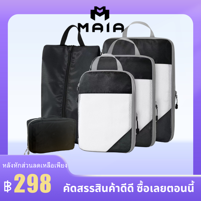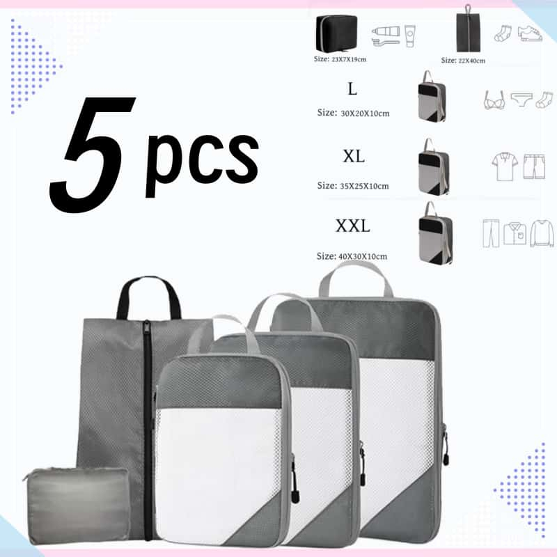 5 ชิ้น แบบบีบอัด กระเป๋าจัดระเบียบ เดินทาง บีบอัดได้ กันน้ำ ชุด 3–9 ชิ้น ประหยัดพื้นที่ ส่งจากไทย