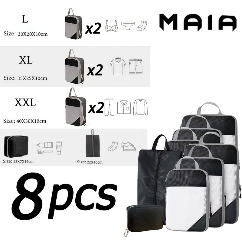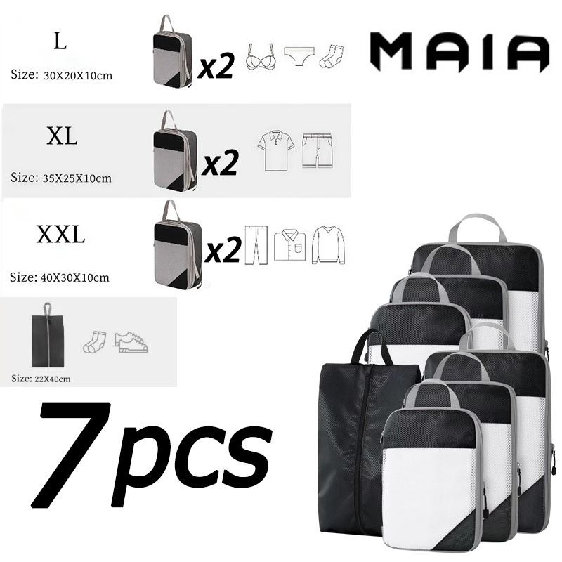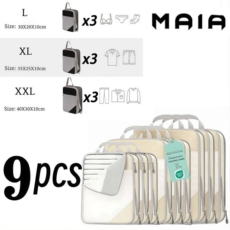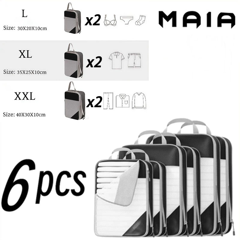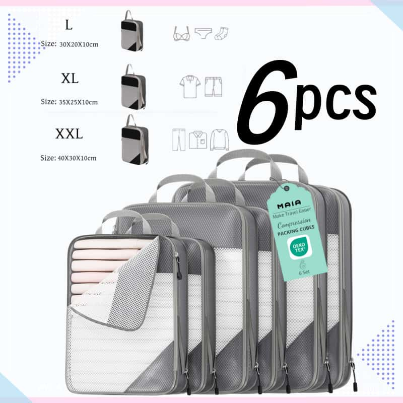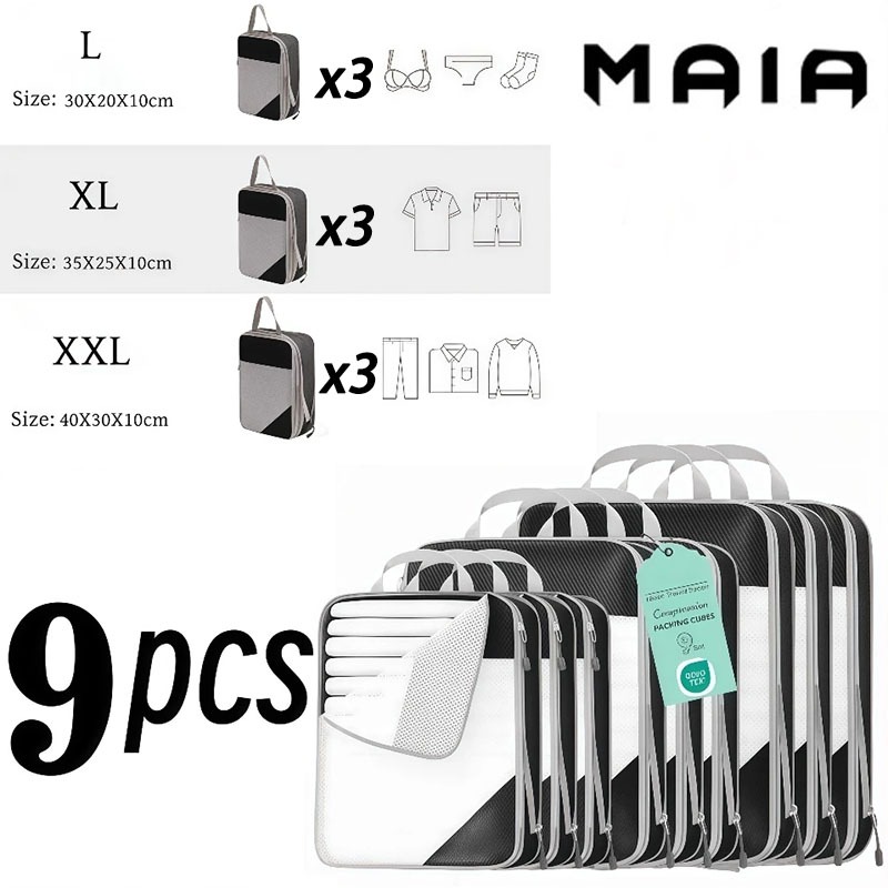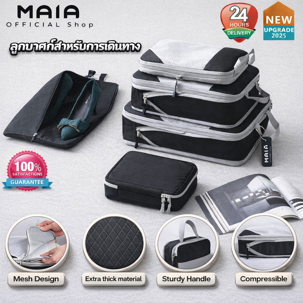 5 ชิ้น แบบบีบอัด กระเป๋าจัดระเบียบ เดินทาง บีบอัดได้ กันน้ำ ชุด 3–9 ชิ้น ประหยัดพื้นที่ ส่งจากไทย