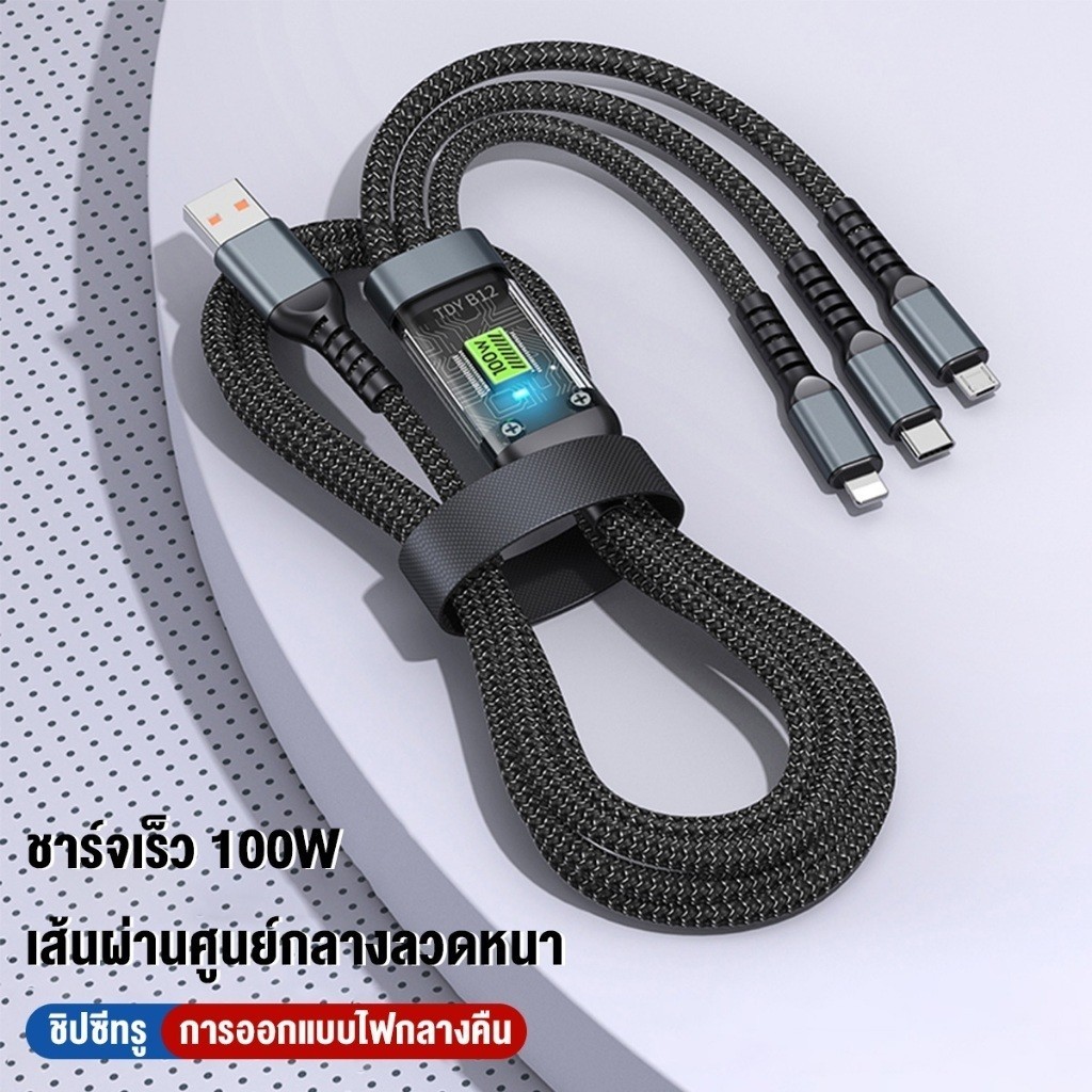 3 in 1 PD 100W Fast สายชาร์จ Super Long Fast CHARGING สายชาร์จ LED 6 สาย USB Fast CHARGING เหมาะสําหรับ Micro/Type-C/lOS