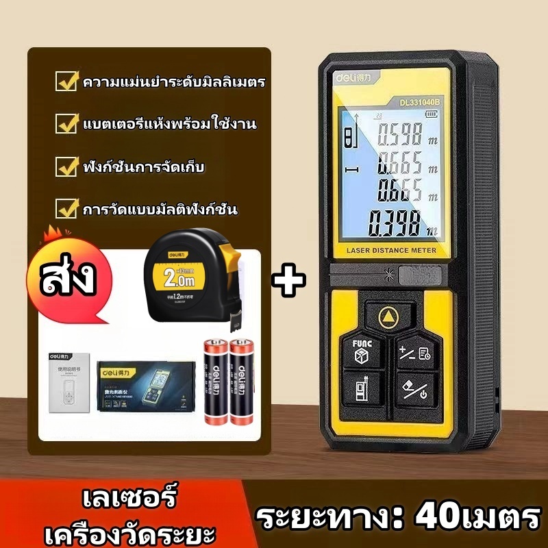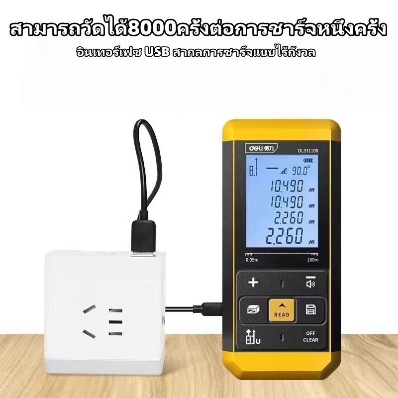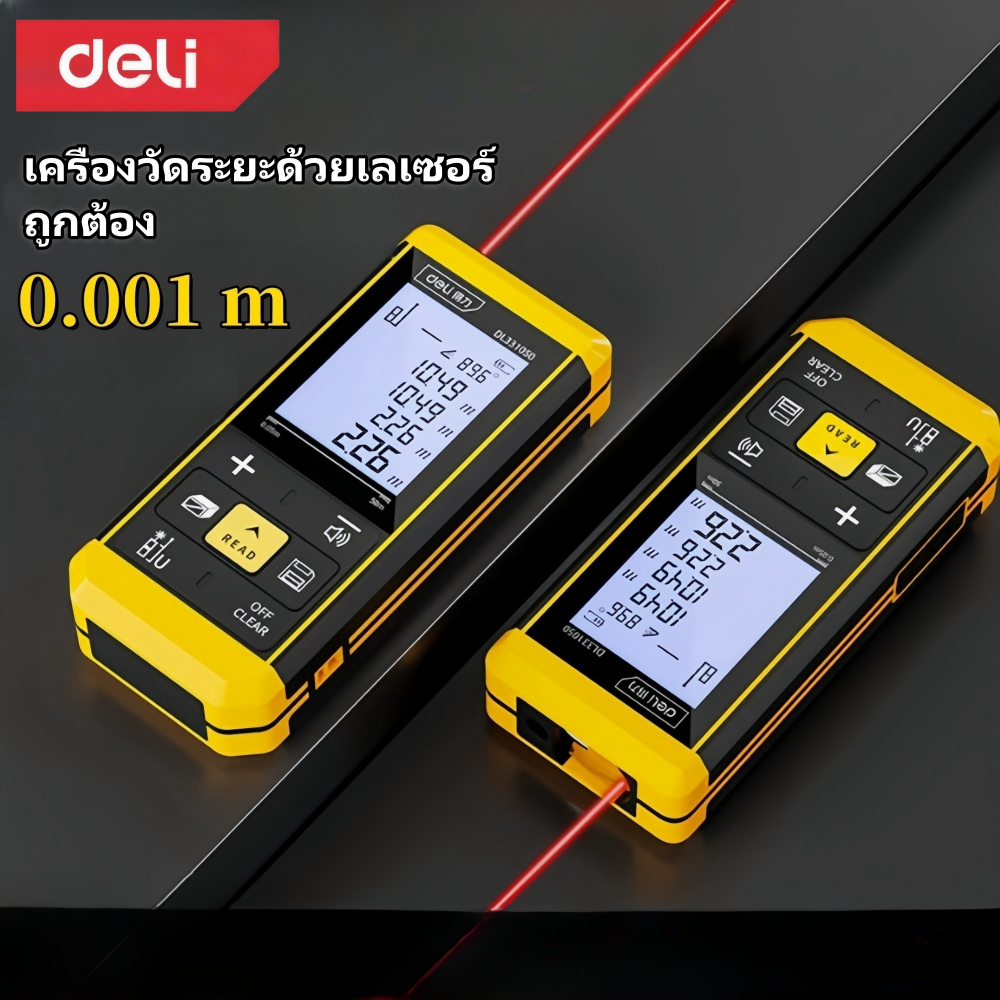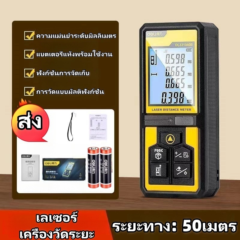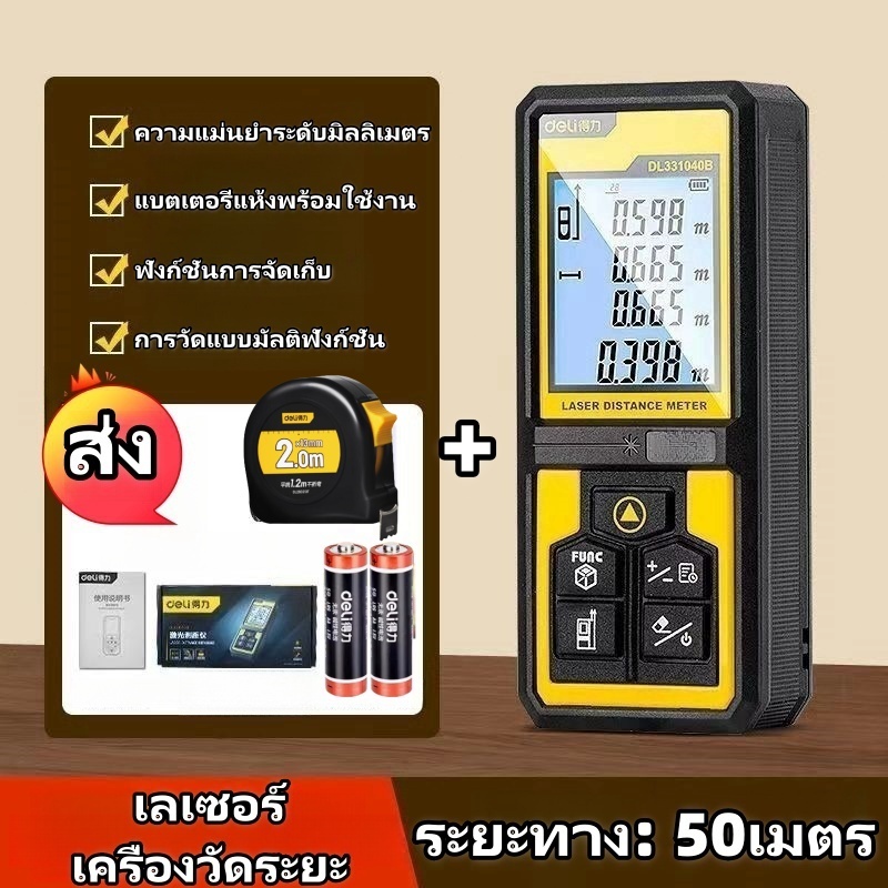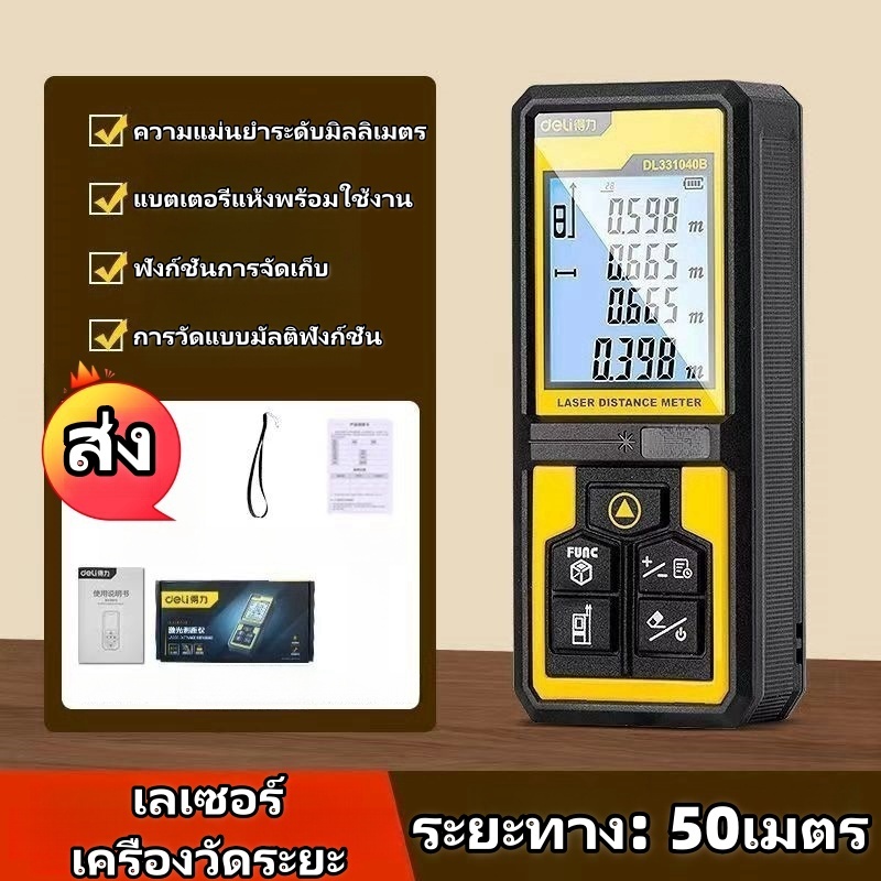 Deliเครื่องวัดระยะด้วยเลเซอร์แบบ 50m ความแม่นยําสูง หน้าจอ LCD ดพกพา การวัดอินฟราเรด