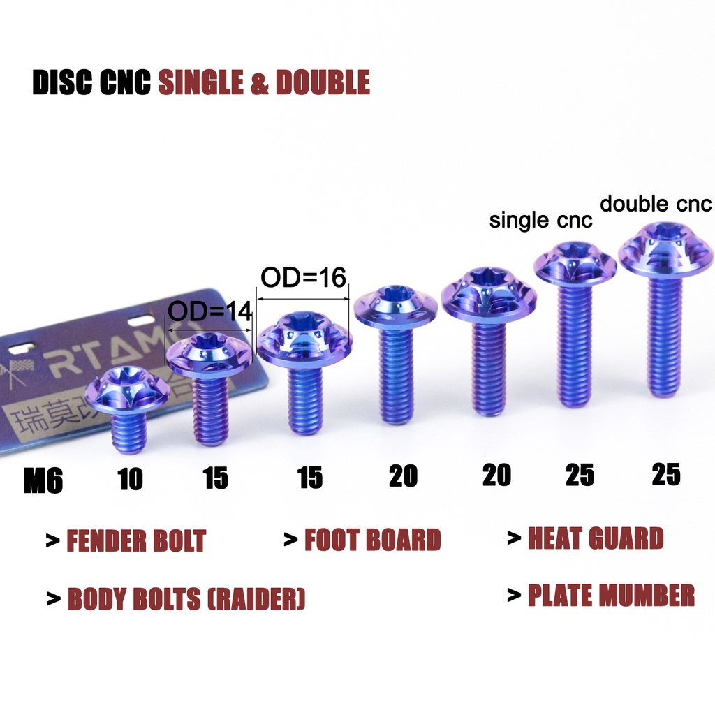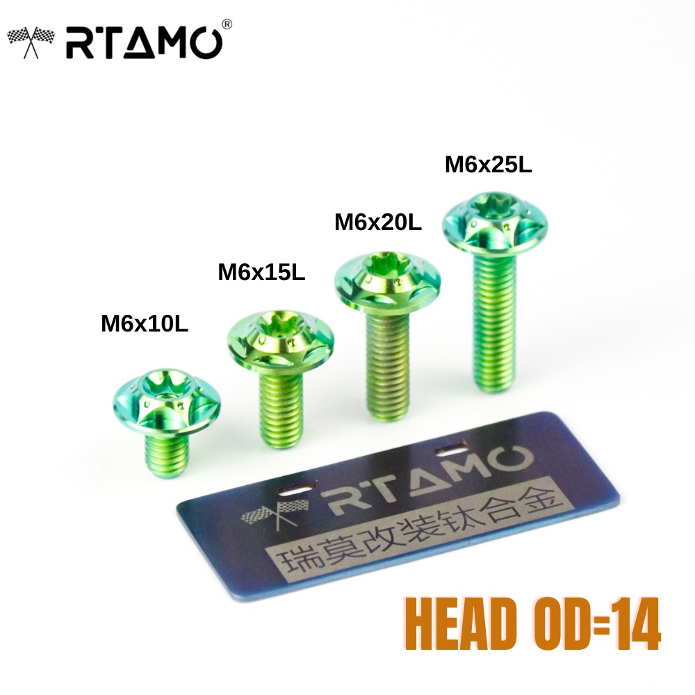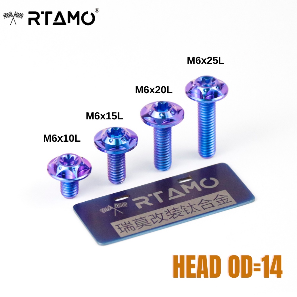 RTAMO Titanium Gr5 M6(#10)x10-30L 14D 4H 16D 5H T30 CNC Flower Head Fit Fender Bolt Body Cover