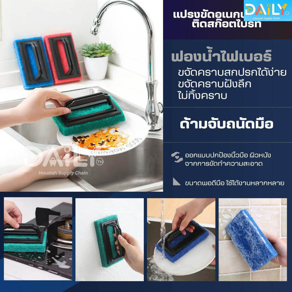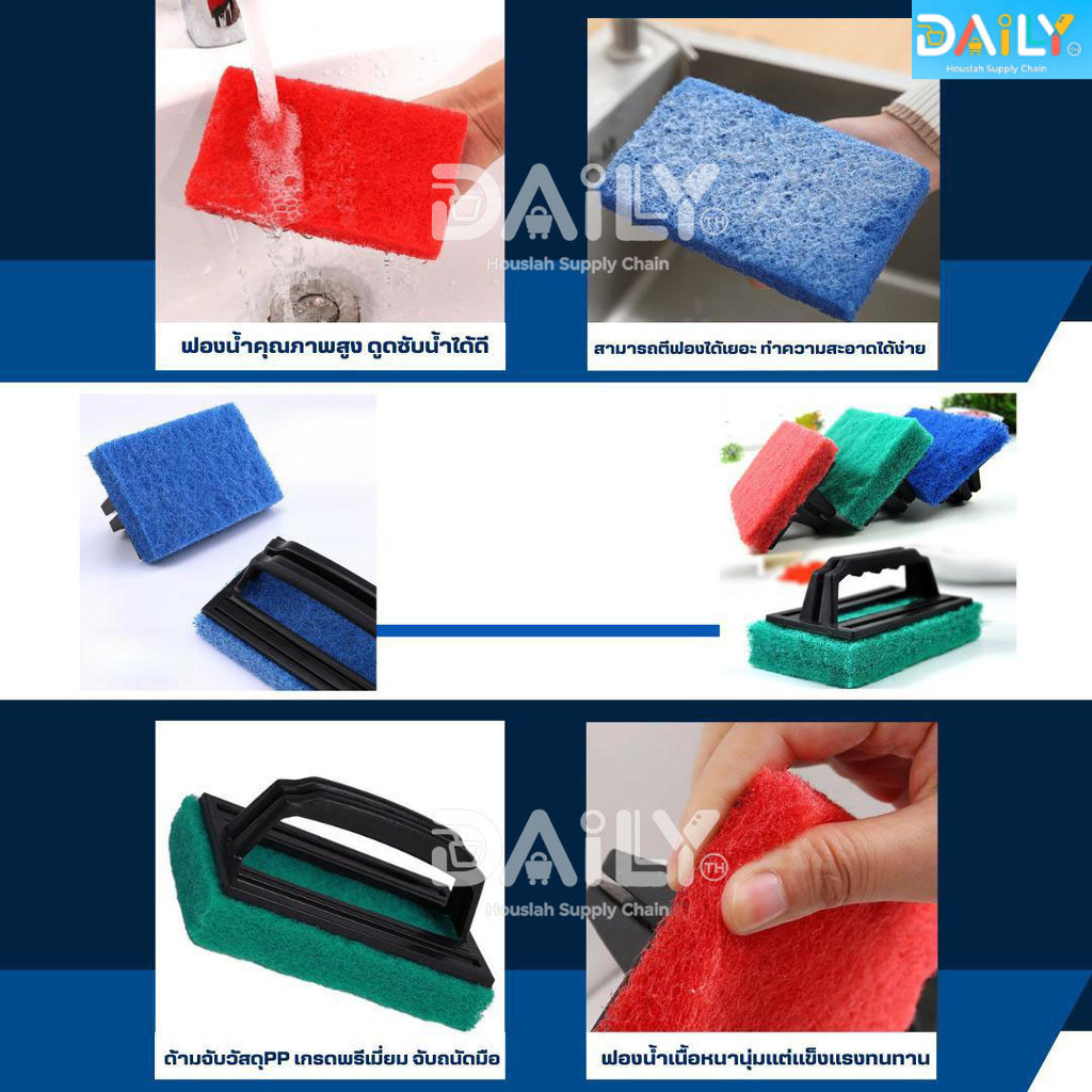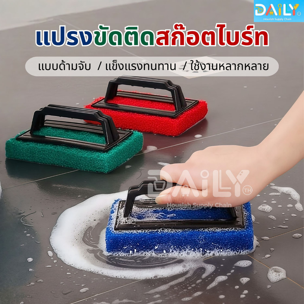 แปรงขัดอเนกประสงค์ติดสก๊อตไบร์ท แปรงขัดพื้น แปรงขัดห้องน้ำ สก๊อตไบร์ทมีที่จับ ใยขัดด้ามจับ