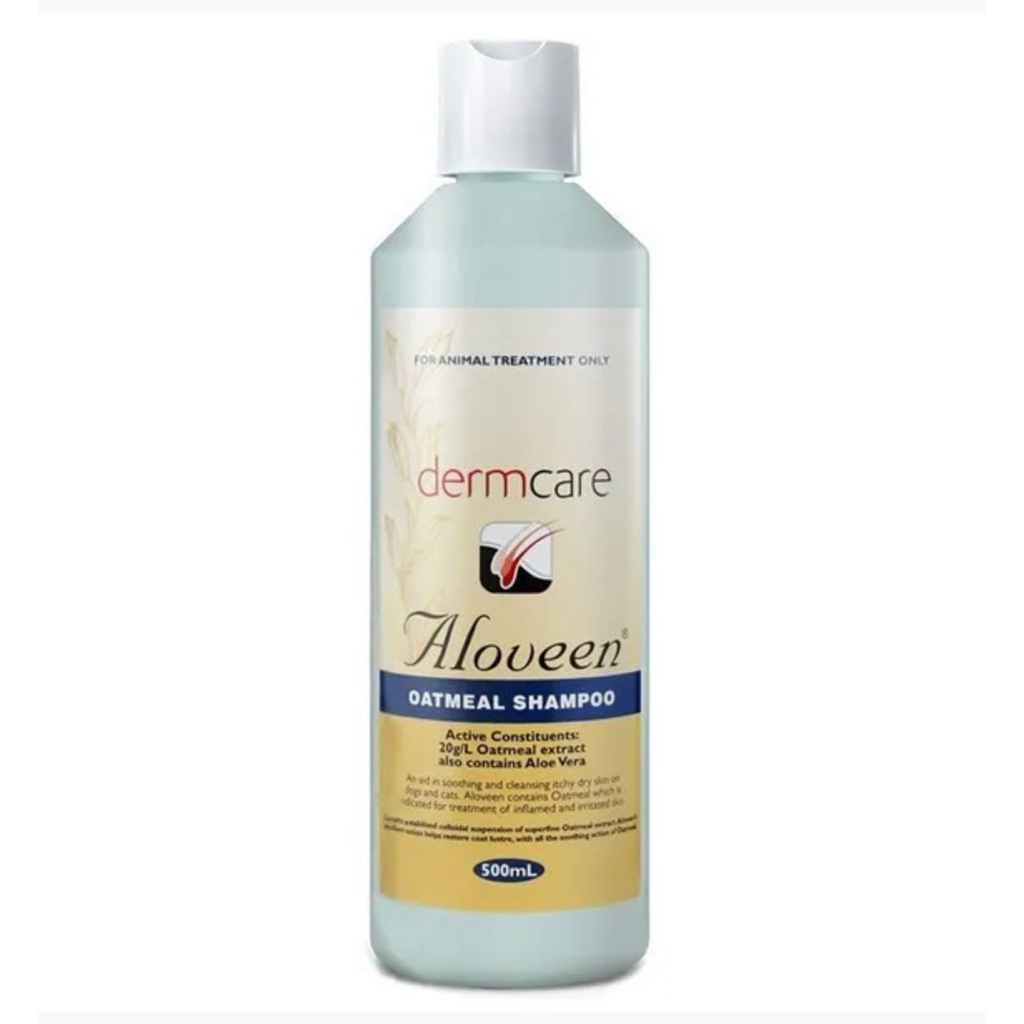 (( ขวดใหญ่ 500 ml. )) Aloveen Oatmeal Shampoo Exp10/2026 แชมพูสำหรับสุนัขและแมว โรคภูมิแพ้ผิวหนัง