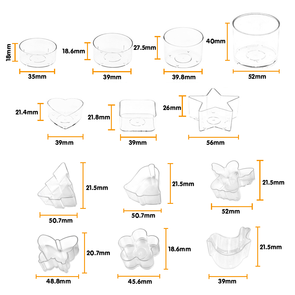 ถ้วยเทียนทีไลท์พลาสติกใส สำหรับทำเทียน ถ้วยเทียนใส ถ้วยใสทรงกลม หัวใจ ผีเสื้อ คริสมาส Tealight cup