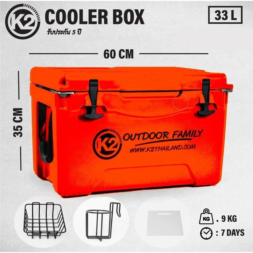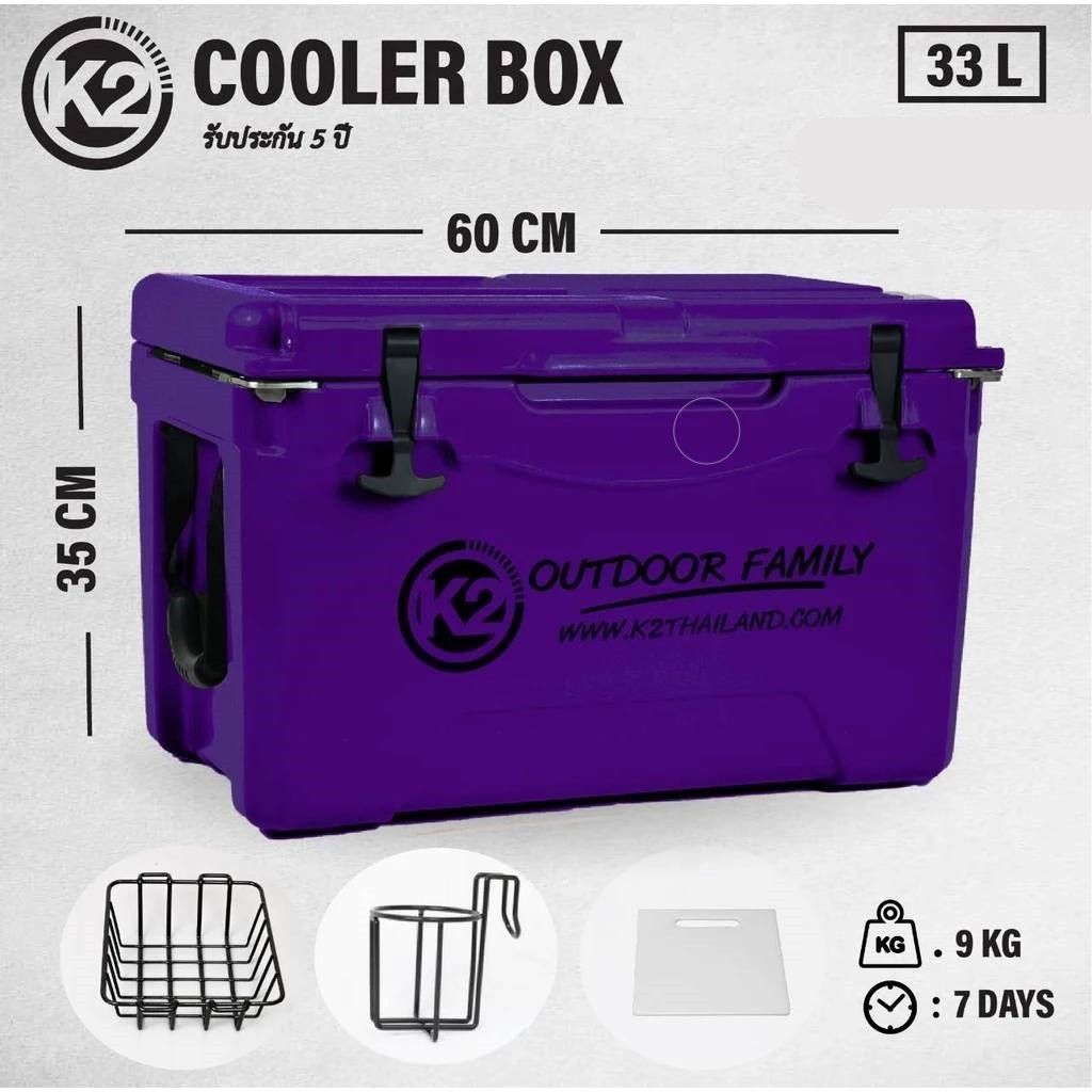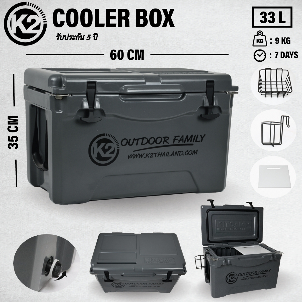 กระติก K2 Cooler Box กระติกน้ำแข็ง ก็บความเย็นได้นาน แข็งแรง ทนทาน 33 ลิตร